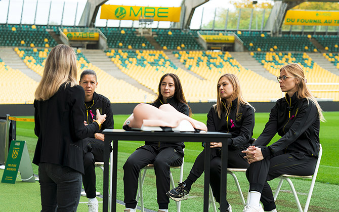 Dans le cadre de la campagne Octobre Rose, trois joueuses et la mé...