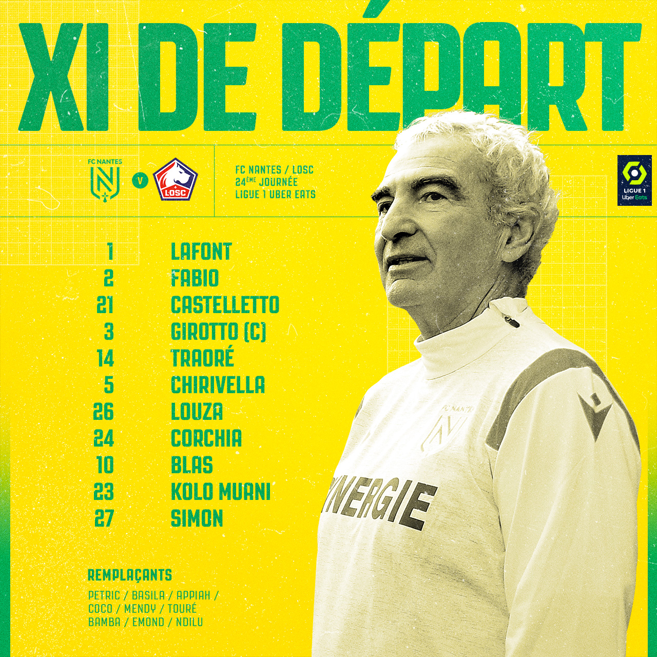 Bonjour à toutes et à tous ! Cet après-midi, les Jaune et Vert accueillent le LOSC dans le cadre de la 24ème journée de L1, au Stade de La Beaujoire. |