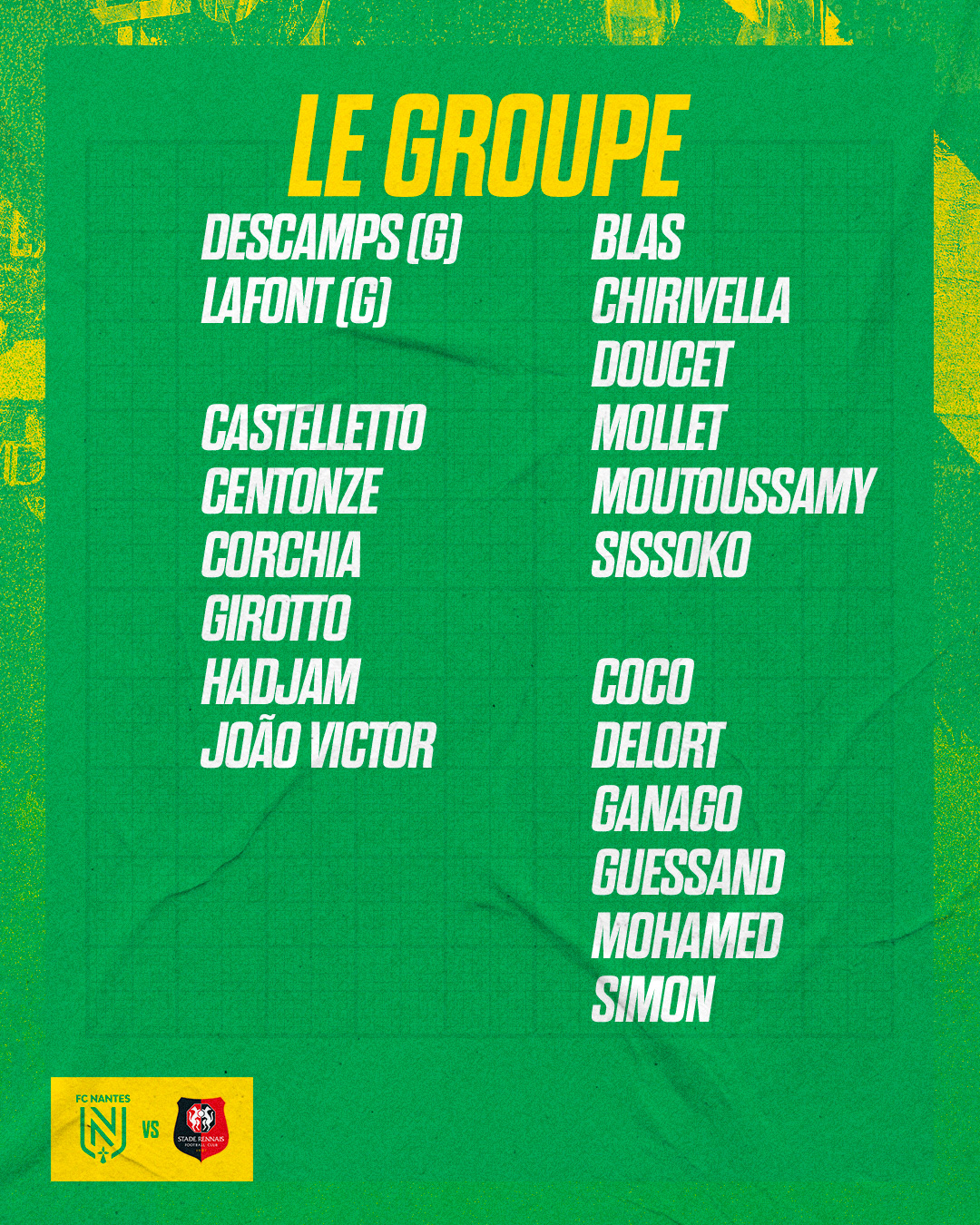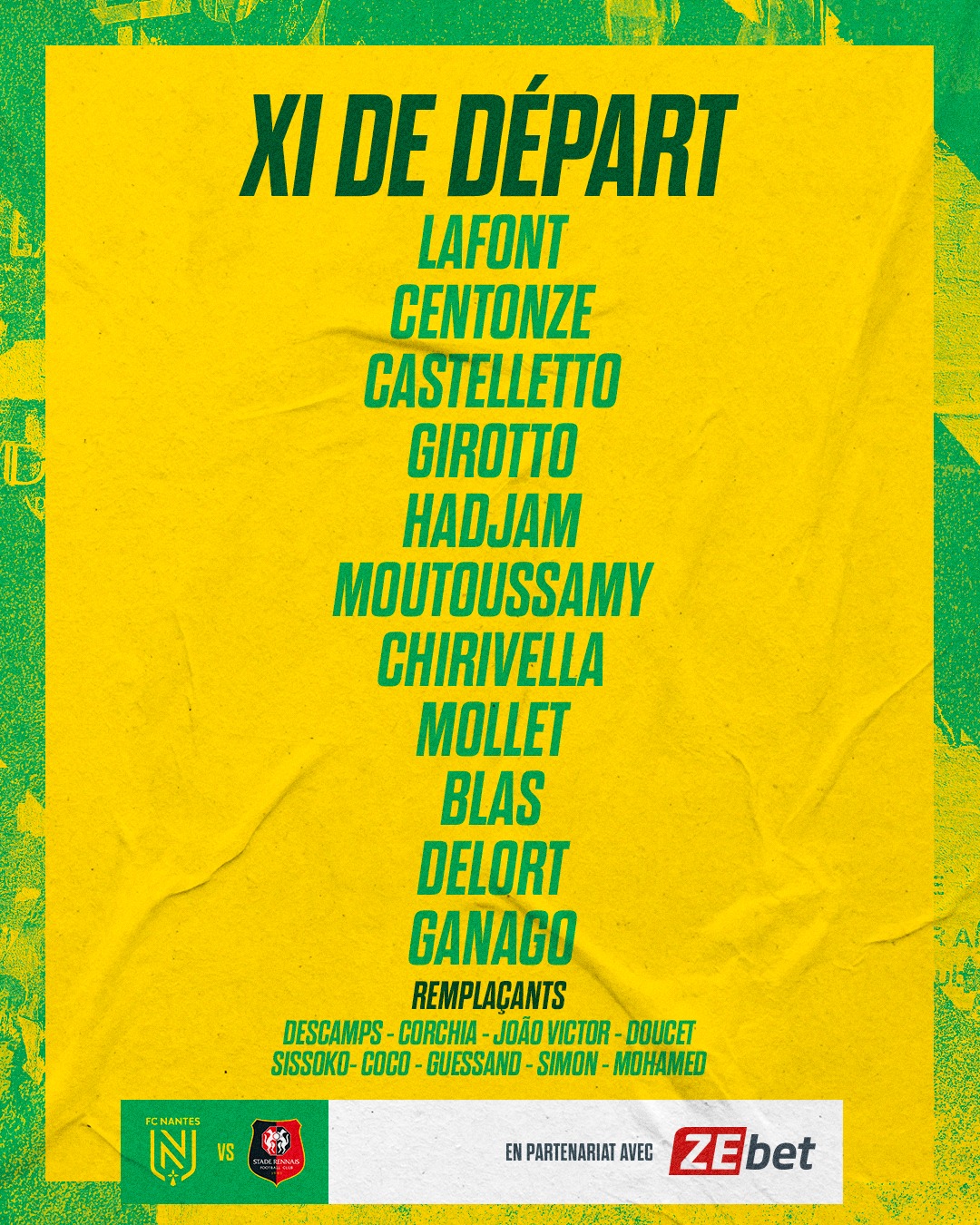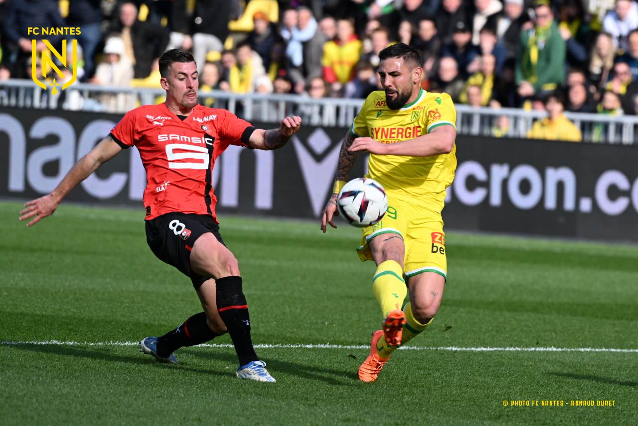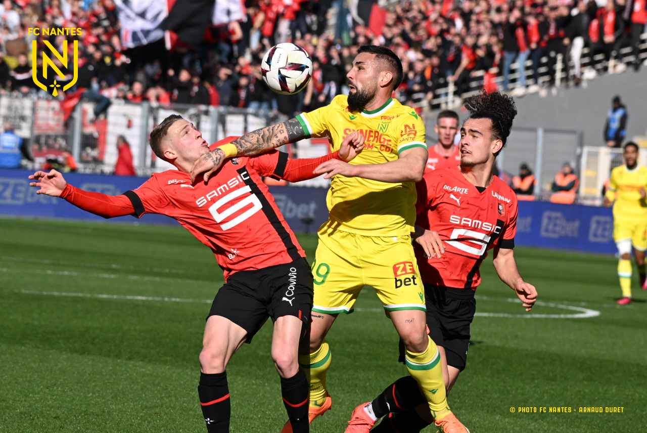 Bonjour à toutes et à tous ! Les Canaris reçoivent le Stade Rennais pour le compte de la 25e journée de Ligue 1 Uber Eats. Coup d'envoi du match à 15h.
