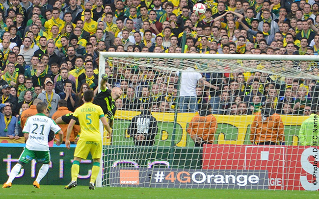 Organisés en 4-4-2, les Canaris réalisaient une entame de partie de grande qualité. Après une première tentative de Monnet-Paquet repoussée devant sa ligne par Papy Djilobodji (3'), les Jaunes prenaient le jeu à leur compte et imposait un pressing haut et virulent sur leurs adversaires.