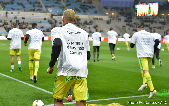 La Beaujoire et les coéquipiers de Rémy Riou ont rendu hommage à Romain Barré, fervent supporter du FC Nantes tué à Nantes dans la nuit du 27 au 28 septembre 2016. En mémoire de leur ami, ses proches ont voulu lui rendre ce vibrant hommage dans ce stade qu'il aimait tant. Une minute d'ovation, et non pas une minute de silence, a ainsi été observée par l'antre nantaise.