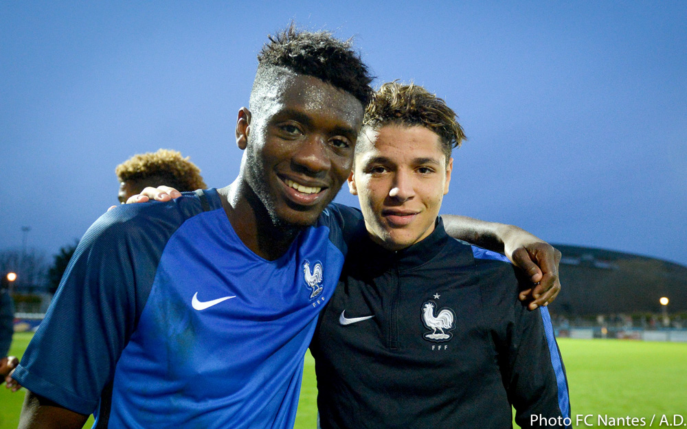 Amine Harit en compagnie de son coéquipier Enock Kwateng. Les deux Nantais ont remporté l'Euro U19 en Allemagne en 2016.