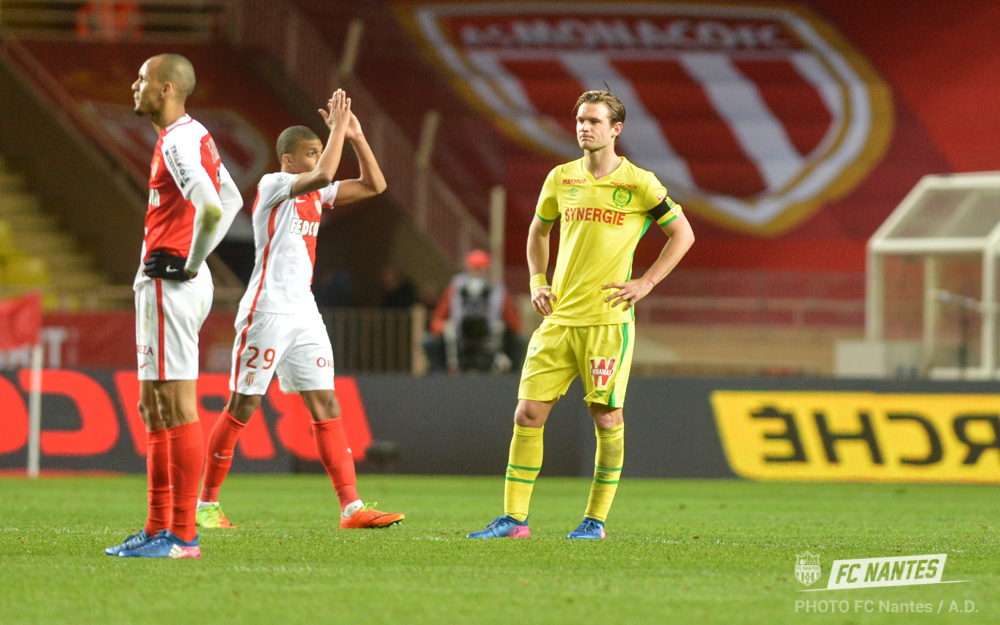 Le FC Nantes n'a pas résisté à l'armada offensive de l'AS Monaco... (4-0) Opposés au leader du Championnat de France de L1 au stade Louis-II, les joueurs de Sergio Conceição ont plié face aux coéquipiers de Kylian Mbappé, auteur d'un doublé (4e et 45e +1). Valère Germain (43e) et Fabinho (59e sp) ont également contribué à la victoire des Monégasques bien installés sur le toit de la L1. Retrouvez les images de la rencontre entre l'AS Monaco et le FC Nantes, affiche de la 28ème journée du Championnat de France de L1.