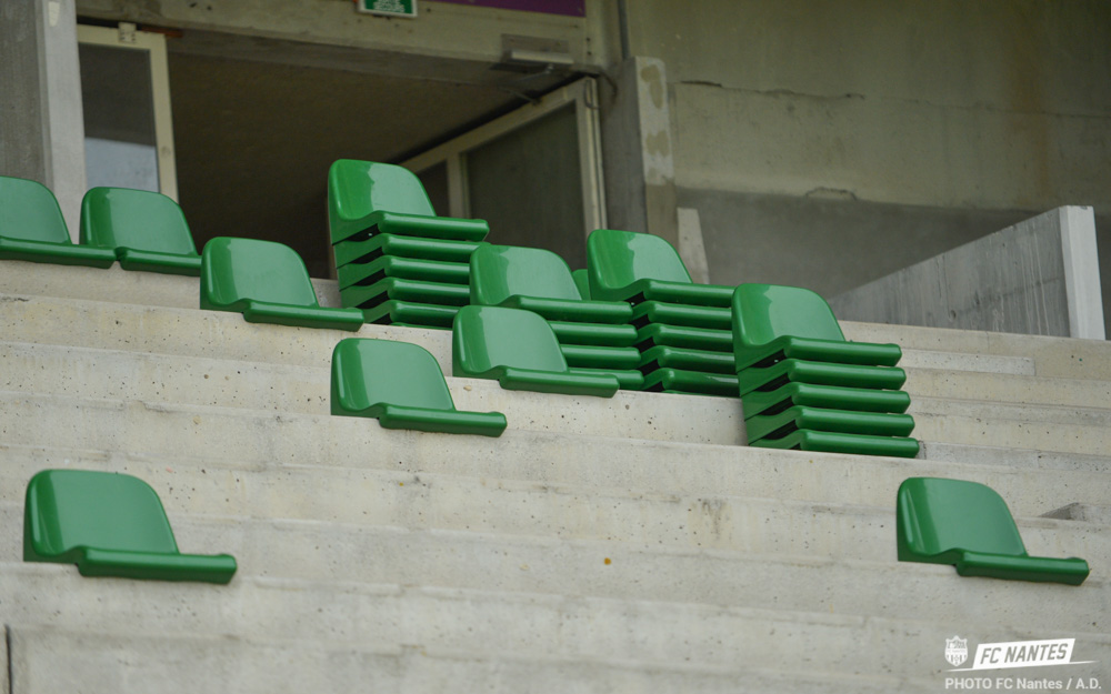 Depuis deux semaines, les nouveaux sièges jaunes et verts sont installés dans le stade de la Beaujoire. La tribune Océane et Erdre sont en voie d'être terminées. Vous avez sans doute participé à l'opération "Pimp Ma Beaujoire" par laquelle le Club associait ses supporters au choix du design du stade lors du remplacement de l'intégralité des sièges. Les travaux ont commencé au lendemain du match FC Nantes - EA Guingamp, dernier match de la saison à la Beaujoire, avec l'enlèvement des anciens sièges, proposés aux abonnés. Le changement des sièges a été motivé par la nécessité de se mettre en conformité avec les règlements de l'UEFA, lesquels imposent des sièges avec dossier. Commencée donc il y a deux semaines, l'installation des nouveaux sièges sera complètement terminée pour la fin du mois de juillet. A l'exception de la tribune Loire - Proginov et l'espace visiteurs. Pour ces deux zones, le FC Nantes a fait le choix de permettre à ses supporters de rester debout et doit donc s'équiper de sièges spécifiques à dossiers rabattables. Cette opération se déroulera en fin d'année 2017.
