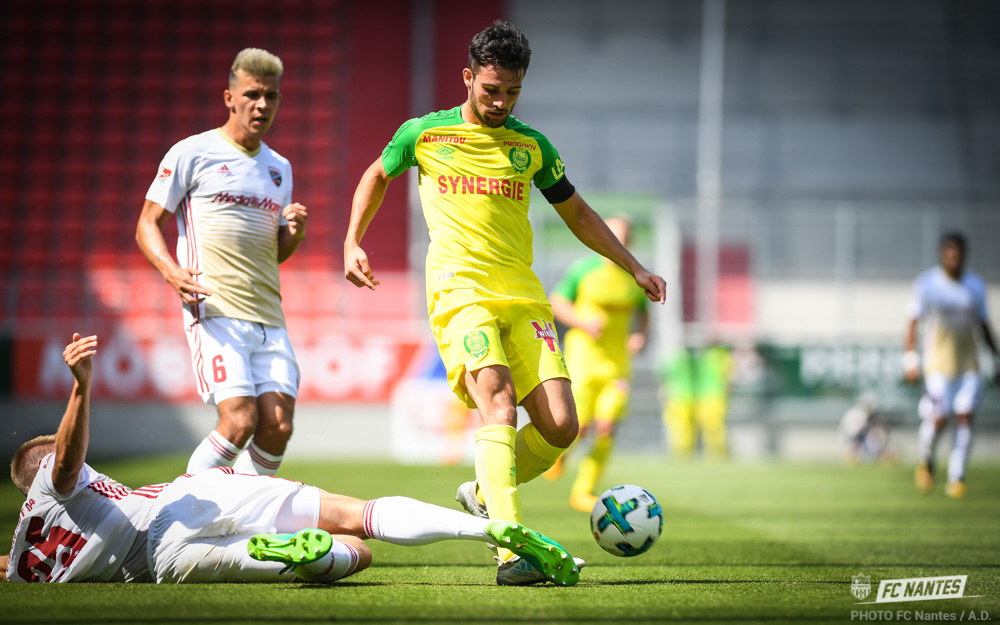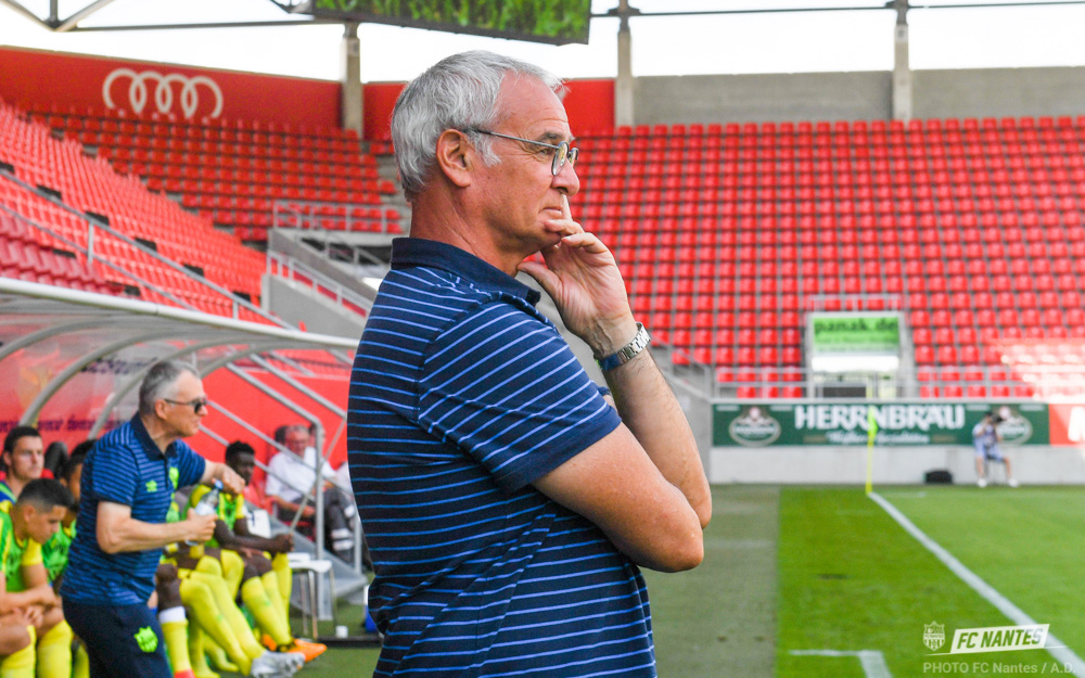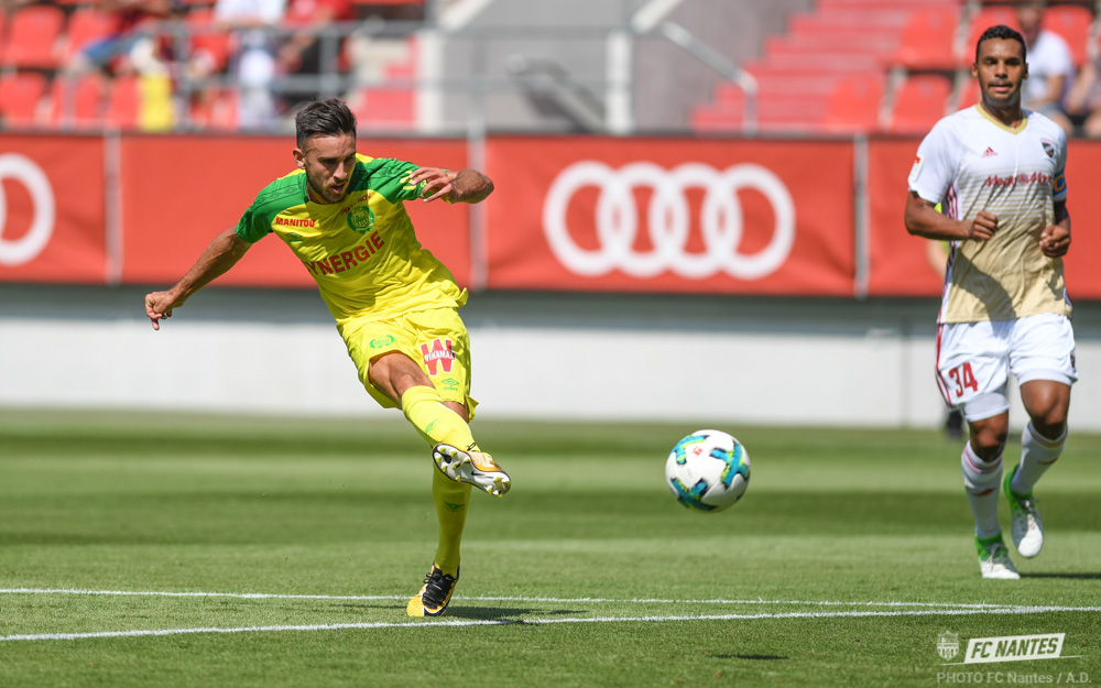 Les joueurs du FC Nantes ont poursuivi samedi leur préparation à Ingolstadt dans le cadre d'une rencontre amicale programmée en Allemagne (2-0). Malgré une première période qui aurait pu permettre aux "Jaunes-et-Verts" de prendre l'avantage, le match a basculé en faveur des locaux en deuxième mi-temps. Opportunistes à deux reprises (46e et 60e), les Bavarois ont trouvé le chemin des filets nantais avant de faire parler leur solidité défensive pour maintenir l'écart. Retracez en images cette troisième rencontre amicale de pré-saison à l'Audi Sportpark d'Ingolstadt.