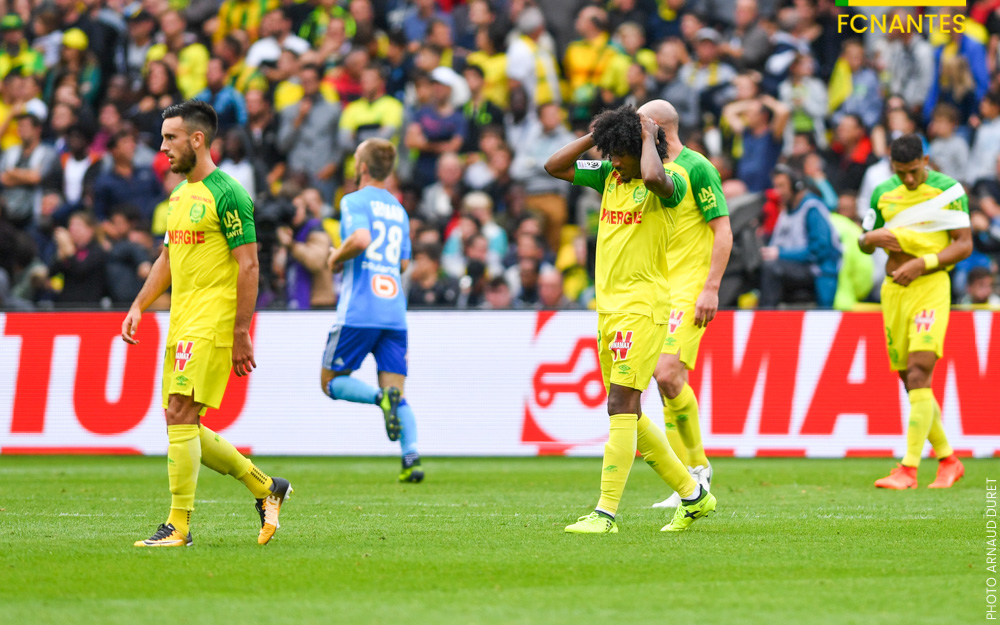 Le FC Nantes s'est incliné face à l'Olympique de Marseille pour ses retrouvailles avec la Beaujoire (0-1). Les joueurs de Claudio Ranieiri, qui ont bénéficié du soutien de 33654 supporters, ont plié au terme d'un scénario complétement défavorable. Les remplacements prématurés de Valentin Rongier (12e), Yacine Bammou (21e) et d'Alexander Kacaniklic (25e) - puis la blessure à l'épaule de Diego Carlos, ont forcé les Nantais à revoir leur organisation et à puiser dans leurs ressources pour résister aux Olympiens jusqu'à la 87ème minute... Lucas Ocampos trompait à bout portant Ciprian Tatarusanu qui avait tout repoussé auparavant... Retrouvez les images de l'affiche entre le FC Nantes et l'Olympique de Marseille disputée au coeur d'une Beaujoire à guichets fermés.