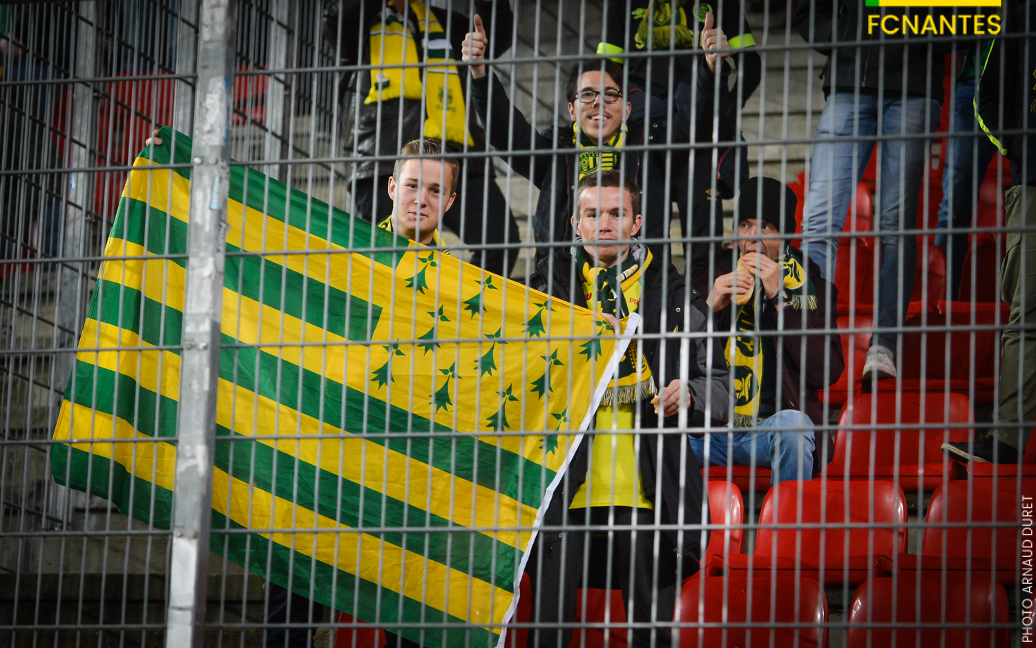 Le FC Nantes s'est incliné sur la pelouse du Stade Rennais dans le cadre du derby (2-1). Un doublé de Wahbi Khazri (51e et 88e) a eu raison de la combativité des "Jaunes-et-Verts" - pourtant réduits à dix après l'exclusion de Nicolas Pallois (57e) -, qui avaient entretenu l'espoir grâce à l'égalisation d'Emiliano Sala (73e sp). Retrouvez les images de la rencontre au cours de laquelle les coéquipiers de Léo Dubois ont bénéficié du soutien de leurs supporters. #AllezFCNantes