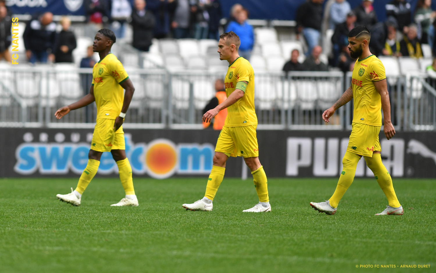 Le FC Nantes s'est incliné à Bordeaux dans le cadre du derby de l'Atlantique (3-0). Emmenés par Vahid Halilhodzic pour sa première à la tête de l'équipe fanion, les coéquipiers de Valentin Rongier ont connu une douloureuse entame de match avec deux buts concédés après sept minutes de jeu... Les Girondins ont scellé le match avant la pause en transformant un penalty par François Kamano (42e). Une confortable avance que les Nantais n'ont pas réussi à combler en seconde période. Retrouvez les images du match durant lequel les Nantais étaient soutenus par près de 500 fans. #AllezFCNantes #MerciDeVotreSoutien