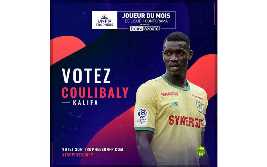 Auteur d'un mois d'avril impressionnant sur le front de l'attaque nantaise, Kalifa Coulibaly, 7 buts cette saison en Ligue 1 Conforama, dont 3 le mois dernier, est nommé pour le Trophée UNFP de joueur du mois d'avril 2019 ! Le Malien est opposé au Lillois Jonathan Bamba et au Montpelliérain Andy Delort. Votez pour soutenir Kalifa !