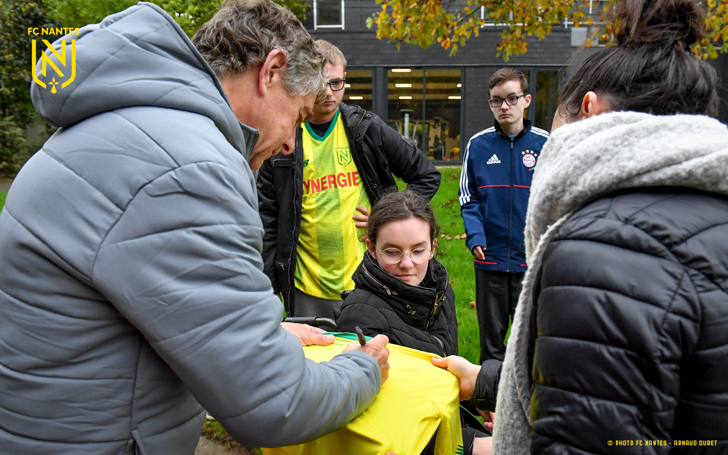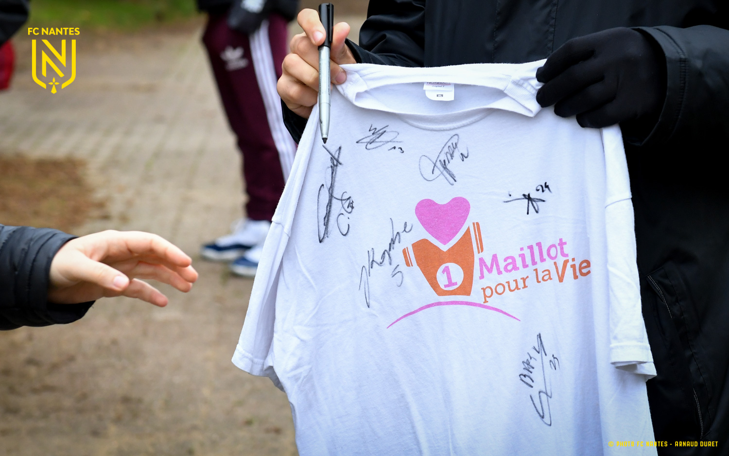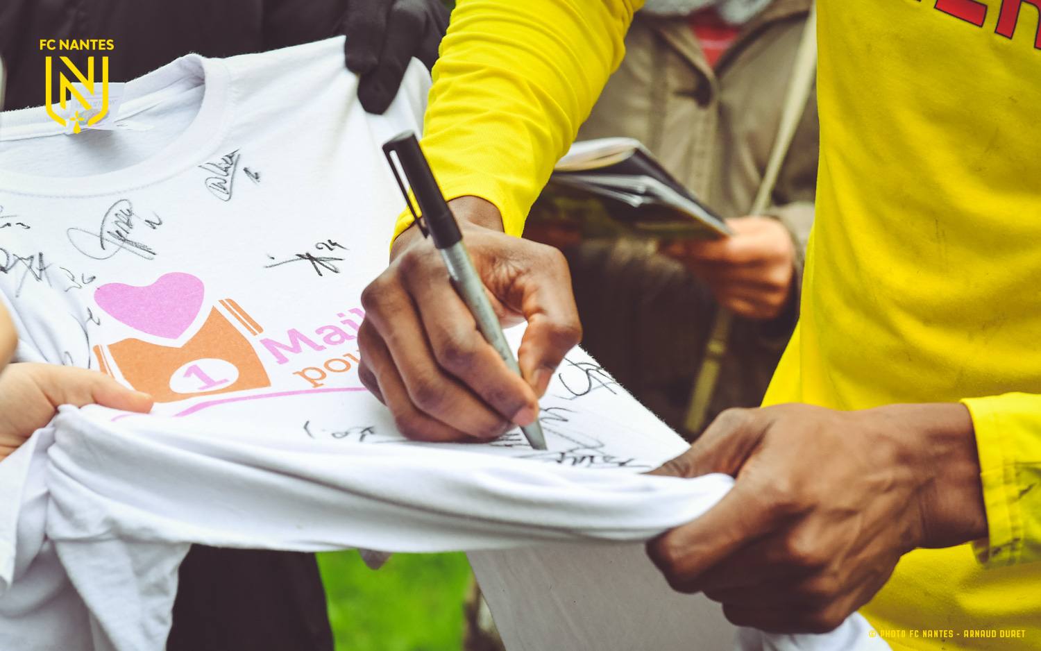 Dans le cadre du partenariat qui unit le FC Nantes à l'association "Un Maillot pour la Vie", les enfants ont la possibilité de rencontrer leurs favoris à l'entraînement ou lors des matches programmés à la Beaujoire. Mercredi matin, les joueurs du FC Nantes, accompagnés de Christian Gourcuff, se sont prêtés au traditionnel jeu des selfies et dédicaces pour apporter du réconfort, du rêve et de l'espoir à ces enfants dont la vie croise malheureusement l'hôpital.
