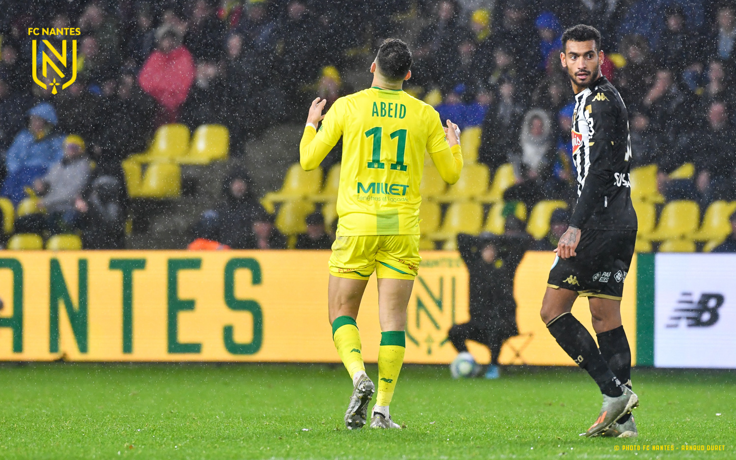 Douchés... Sous une pluie incessante, les coéquipiers de Mehdi Abeid (photo en UNE) n'ont pu contenir Angers SCO lors du baisser de rideau de l'année 2019 (1-2). Ce sont pourtant les "Jaunes-et-Verts", soutenus par près de 30000 supporters, qui ont ouvert la marque sur une frappe de Ludovic Blas (17e). Un avantage que ne tenait malheureusement pas les hommes de Christian Gourcuff en seconde période. Antonin Bobichon (50e) et Farid El Melali (87e) se chargeaient d'inverser le cours de la rencontre... Retrouvez les images de cette ultime affiche de l'année. #AllezFCNantes