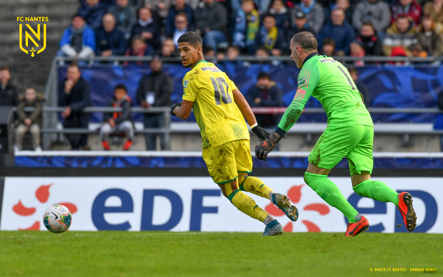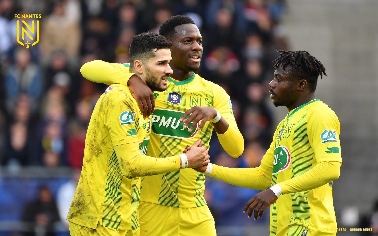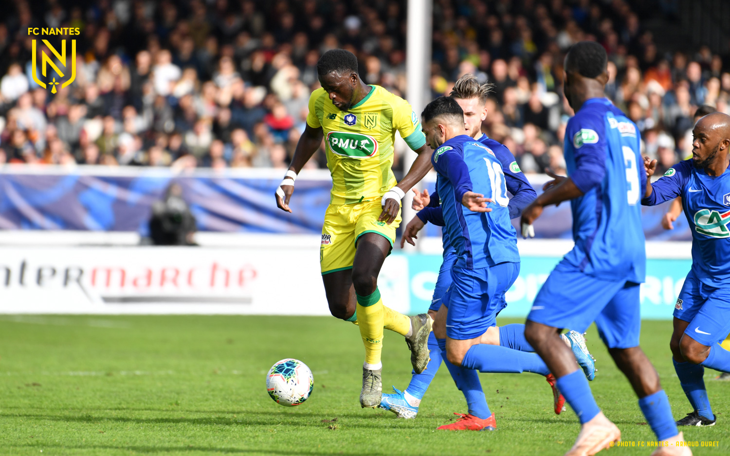Le FC Nantes s'est qualifié pour les 16èmes de finale de la Coupe de France aux dépens de l'Aviron Bayonnais FC (0-2). Sur la pelouse du stade Jean-Dauger, les coéquipiers d'Abdoulaye Touré ont pris l'ascendant en première période grâce à Kalifa Coulibaly (14e) avant de breaker en fin de match sur une lourde frappe de Mehdi Abeid (90e +4). Retrouvez les images de la qualification des "Jaunes-et-Verts". #AllezFCNantes