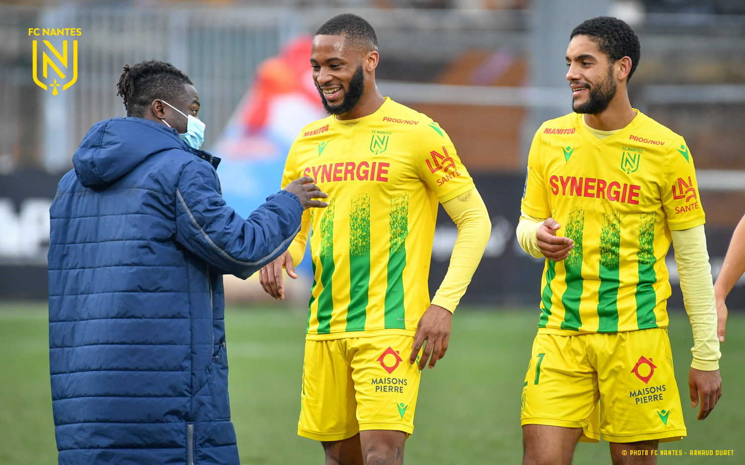Le FC Nantes a renoué avec le succès sur la pelouse d'Angers SCO dans le cadre de la 25ème journée de L1 Uber Eats (1-3). Deux buts inscrits dès l'entame de la partie par Moses Simon (4e) et Imran Louza (7e sp) ont idéalement lancer les débuts d'Antoine Kombouaré sur le banc. La réduction de l'écart par Thomas Mangani (33e sp) était vaine pour des Scoïstes qui pliaient une troisième fois sur une percée victorieuse de Kader Bamba (86e). fcnantes.com vous propose les images de la rencontre jouée à huis-clos à Raymond-Kopa.