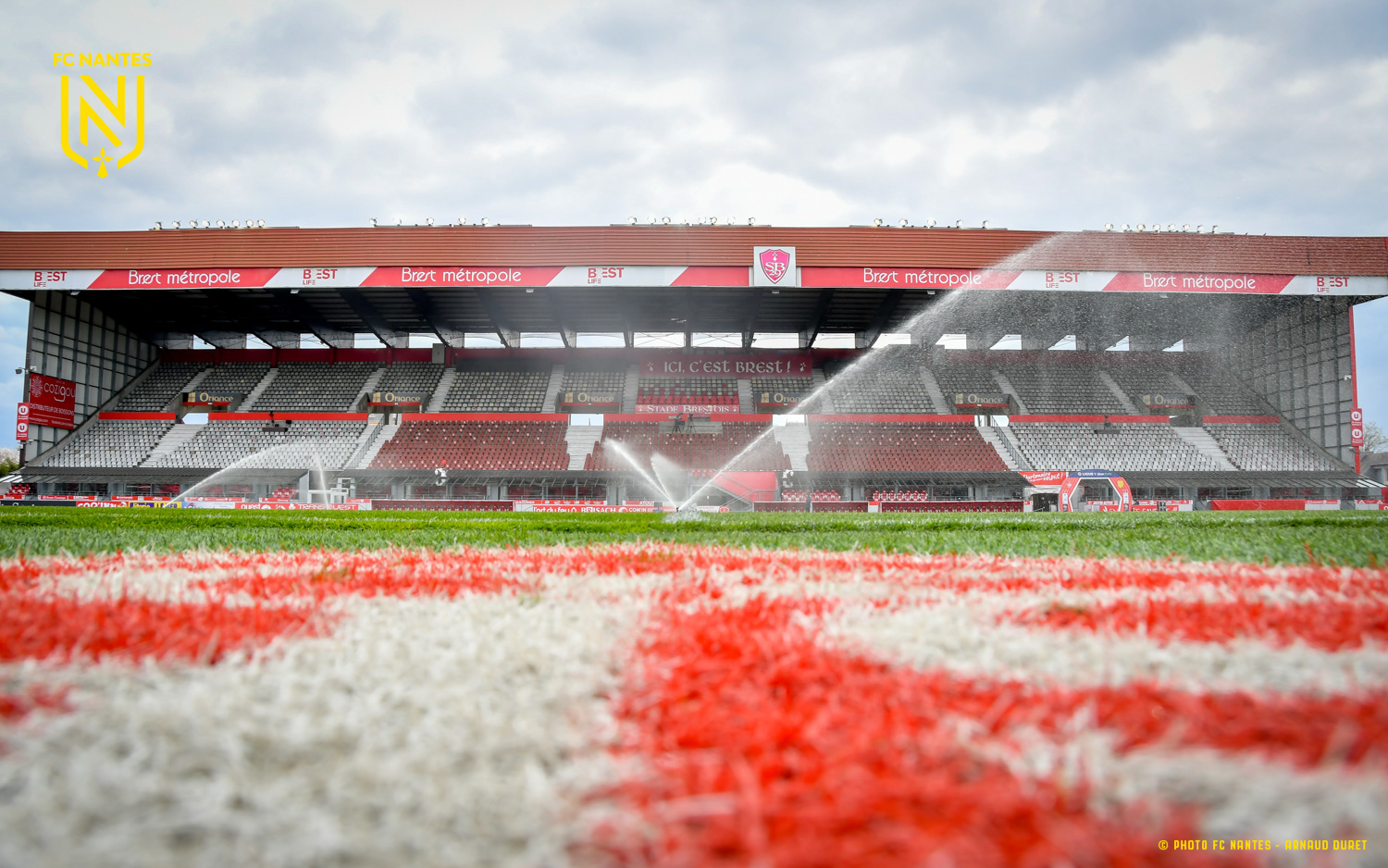 Découvrez les premières images à Francis Le Blé à deux heures du coup d'envoi de l'affiche de la 35ème journée de L1 Uber Eats entre le Stade Brestois 29 et FC Nantes. Coup d'envoi à 15h. #AllezFCNantes