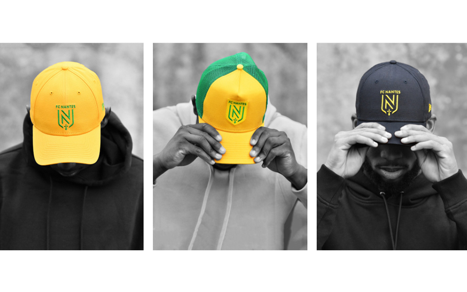Afin de vous protéger du soleil, le FC Nantes vous propose trois modèles de casquettes aux couleurs du Club ! Les Jaune et Vert se sont associés avec le N°1 mondial du headwear, New Era. La célèbre marque américaine a développé des produits mêlant la qualité et surtout, le style !