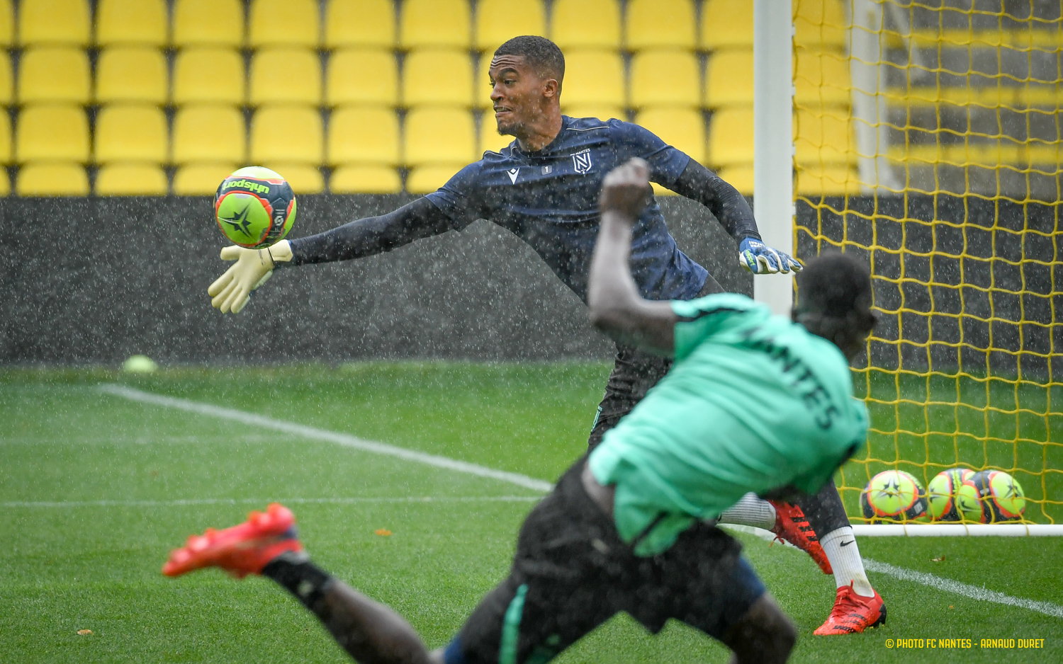 Avant de retrouver la Beaujoire dimanche prochain (17h), les coéquipiers de Wylan Cyprien (photo en une) ont pris leurs marques jeudi matin au coeur de l'antre nantais. Une séance variée et soutenue attendait les "Jaunes-et-Verts" avant l'affiche de la 5ème journée de L1 Uber Eats. fcnantes.com vous propose de nouvelles images de la préparation des joueurs d'Antoine Kombouaré.