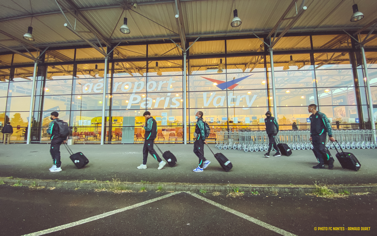 Après une ultime session de travail sur les rives de l'Erdre, la délégation nantaise s'est envolée samedi après-midi pour la région Champagne-Ardenne. Au terme d'un vol de 54 minutes, l'Embraer 145 F-HFCN s'est posé sur la piste de l'aéroport Paris-Vatry. Attendus dimanche (15h) au stade Auguste-Delaune, les Nantais entament un programme spécifique mêlé de soins et d'analyses techniques avant de rentrer dans le vif du sujet de la 8ème journée de L1 Uber Eats. Retour en images sur le déplacement à Reims.
