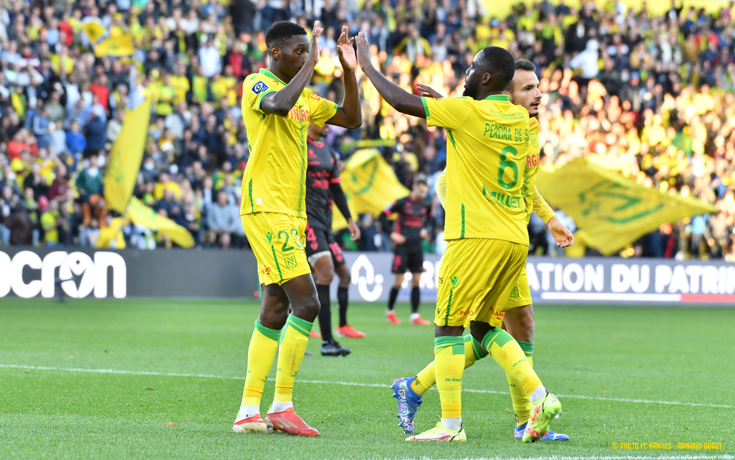 Le FC Nantes s'est imposé aux dépens de Clermont Foot 63 dans le cadre de la 11ème journée de L1 Uber Eats. Andrei Girotto (38e) et Ludovic Blas (61e), qui répondait à l'heure de jeu à l'égalisation de Mohamed Bayo (49e), ont permis aux Jaunes-et-Verts de remporter leur cinquième victoire de la saison (2-1). Une performance qui assoit le FC Nantes dans la première partie du tableau. fcnantes.com vous propose de revenir en images sur la rencontre marquée par les Journées Nationales de l'Arbitrage.
