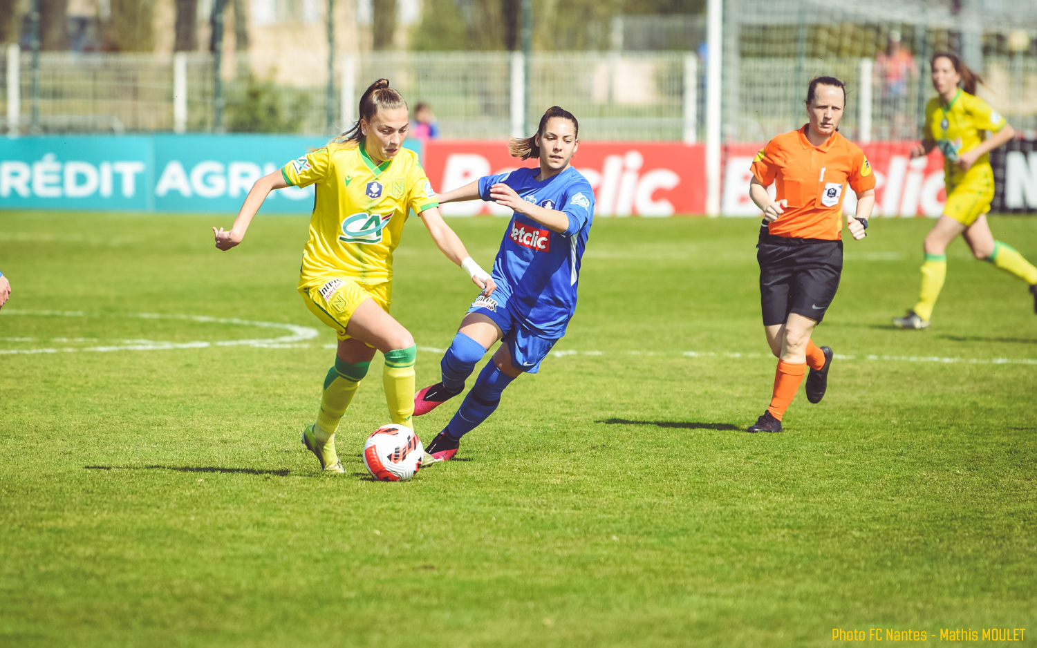 L'aventure en Coupe de France des Féminines du FC Nantes a pris fin sur la pelouse d'Yzeure (2-1). Arrivées en demi-finale de la compétition, les joueuses de Mathieu Ricoul n'ont pas réussi à franchir cette dernière marche. Surprises en première période par le réalisme des Yzeuriennes (13e et 30e), les Nantaises ont couru après le tableau d'affichage, sans démériter, en posant le jeu et en se projetant vers l'avant. Thelma Eninger a entretenu l'espoir à l'heure de jeu (68e : 2-1). Une réduction de l'écart malheureusement vaine pour les coéquipières de Charlotte Lorgeré qui butaient sur la muraille adverse. Une déception pour la D2F du FC Nantes qui se tourne à présent vers son objectif initial de début de saison : celui de rejoindre l'élite la saison prochaine.