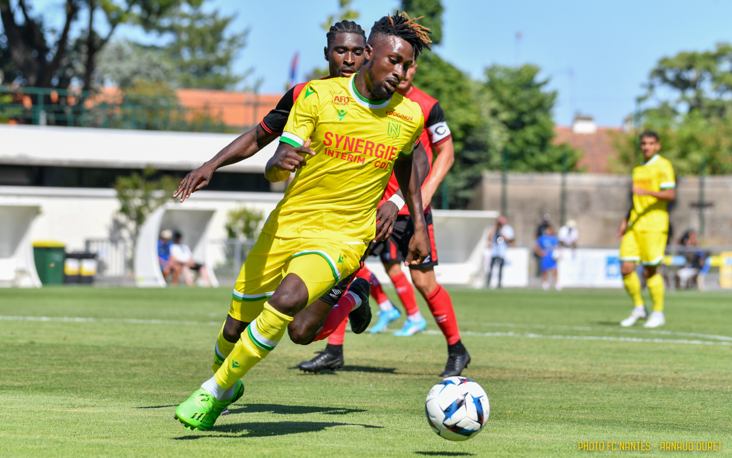 Le FC Nantes a entamé sa campagne amicale à La Baule au terme d'un stage de préparation soutenu. Sous les yeux de nombreux passionnés du ballon rond et supporters des Jaunes-et-Verts, les joueurs d'Antoine Kombouaré se sont mesuré à l'En Avant Guingamp (0-1). L'occasion pour le coach nantais de procéder à une large revue d'effectif et de lancer Moussa Sissoko et Evann Guessand. fcnantes.com vous propose les images de la rencontre marquée par l'hommage à la mémoire de Sébastien Oger, recruteur du FC Nantes.