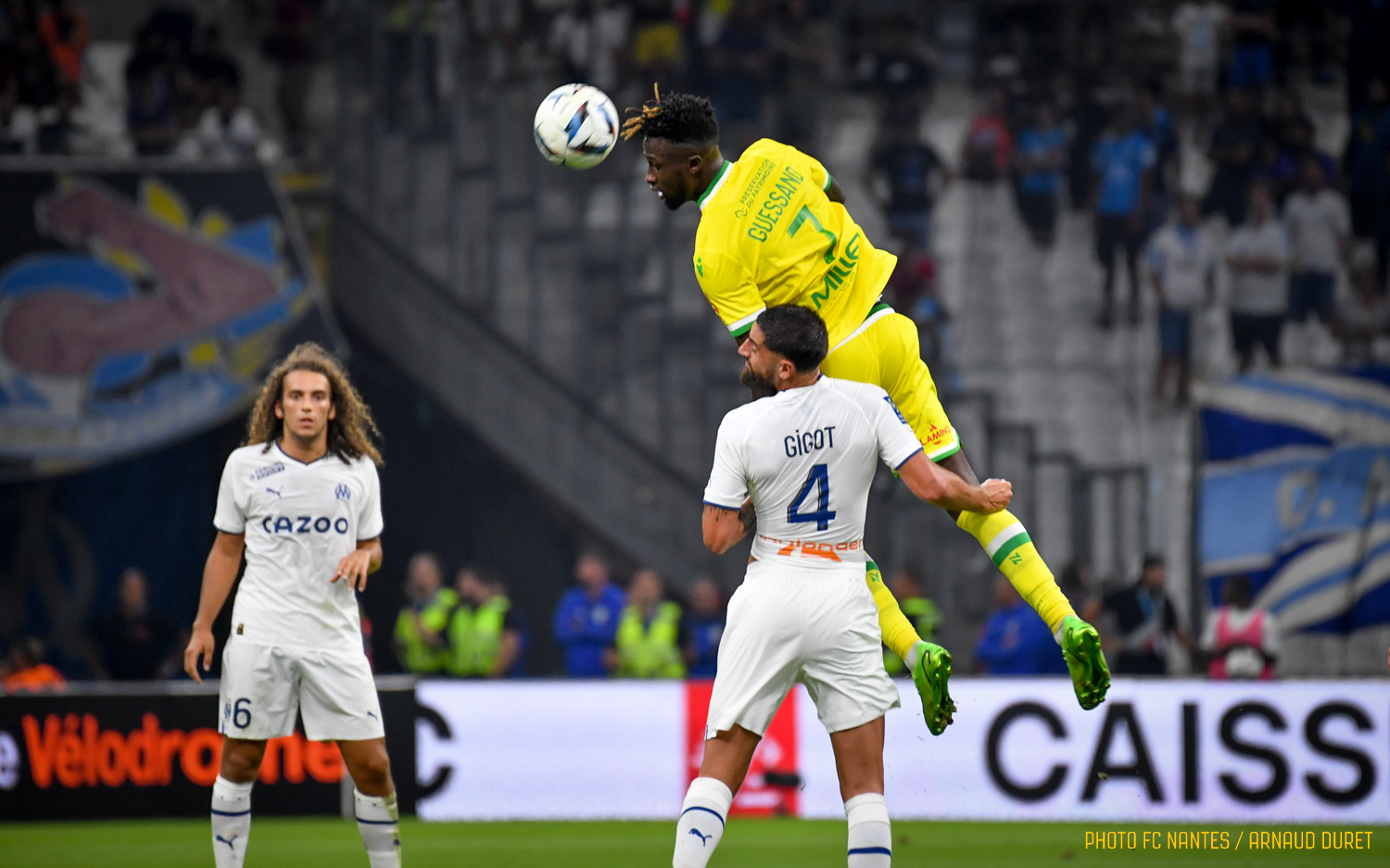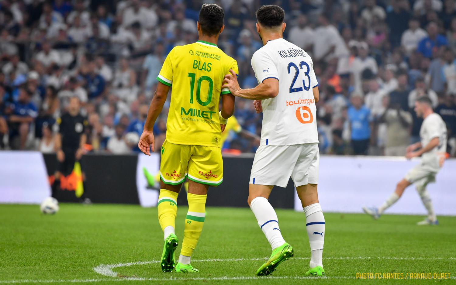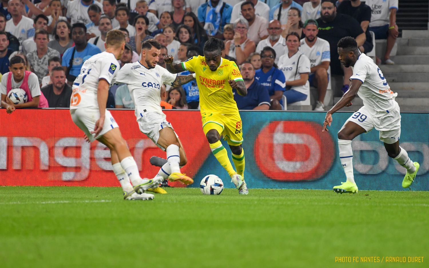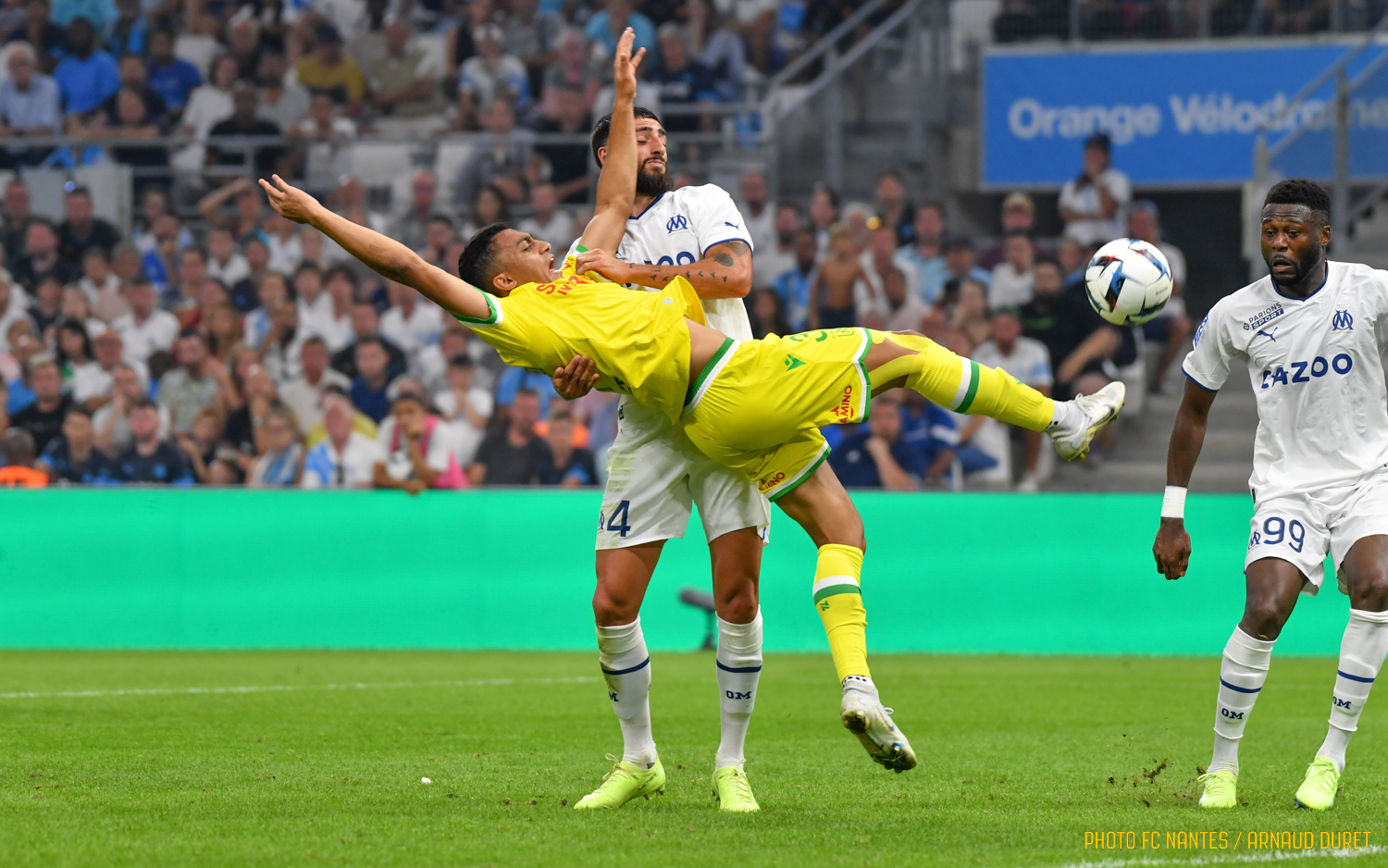 Le FC Nantes s'est incliné face à l'Olympique de Marseille au stade Orange-Vélodrome (2-1). Soutenus par près de 500 supporters au coeur du stade annoncé à guichets fermés, les coéquipiers d'Alban Lafont ont vu le réalisme les fuir avant de concéder une première réalisation de Chancel Mbemba (70e). Alors que le scénario semblait sourire avec l'égalisation de Ludovic Blas sur penalty (78e) suite à une faute de Samuel Gigot, exclu (77e), Nicolas Pallois remettait bien involontairement de la tête l'OM sur le chemin de la victoire... (csc 82e). fcnantes.com vous propose de retracer cette 91e affiche entre les deux formations.