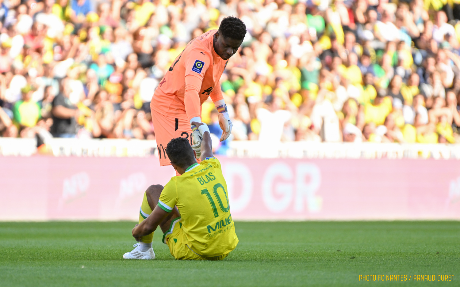 Le FC Nantes et le RC Lens se sont neutralisés à la Beaujoire dans le cadre de la 8ème journée de L1 Uber Eats (0-0). Il n'aura finalement manqué qu'un petit but pour récompenser les efforts des coéquipiers d'Alban Lafont. Appliqués et solidaires défensivement, les Nantais ont fait mieux que résister face à l'armada lensoise. fcnantes.com vous propose les images de cette affiche de la 8ème journée disputée devant près de 29000 supporters et marquée par le coup d'envoi de Willy Siret, Directeur général de LNA Santé.