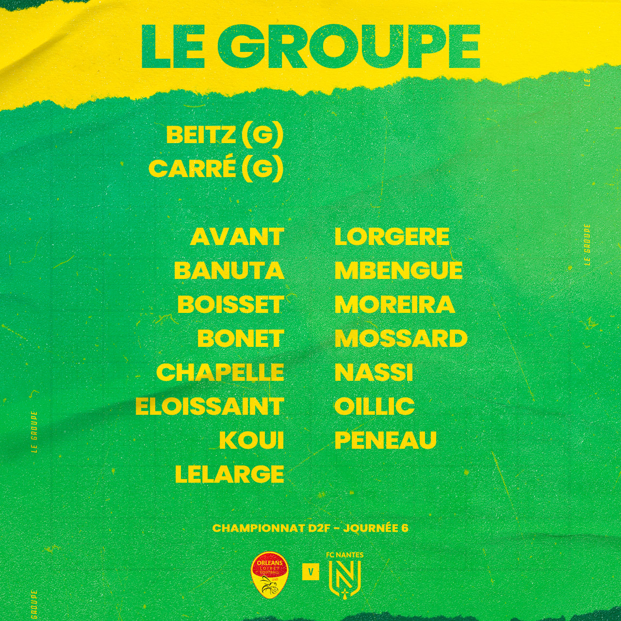 La formation D2F du FC Nantes évoluera cet après-midi (15h) sur la pelouse de l'US Orléans, en 8ème journée de championnat. Découvrez le groupe retenu par Oswaldo Vizcarrondo.