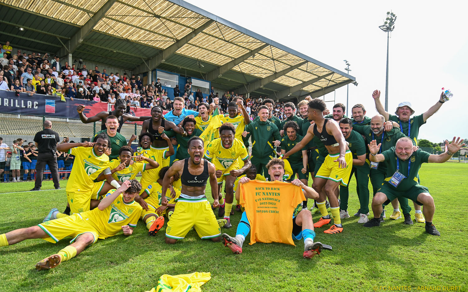 Dimanche 4 juin, les U19 Nationaux du FC Nantes sont devenus Champions de France pour la deuxième fois consécutive ! Tombeurs de l'AS Monaco (3-2) la saison passée, les Jaune et Vert ont cette fois-ci pris la mesure du Paris Saint-Germain (2-1), au terme d'un match joué avec une grande discipline tactique. Exaucé Mafoumbi (9') et Herba Guirassy (72') sont les buteurs nantais. fcnantes.com vous propose de revivre en images, les meilleurs moments de cette finale avec à la clé, une immense joie pour les joueurs et le staff !
