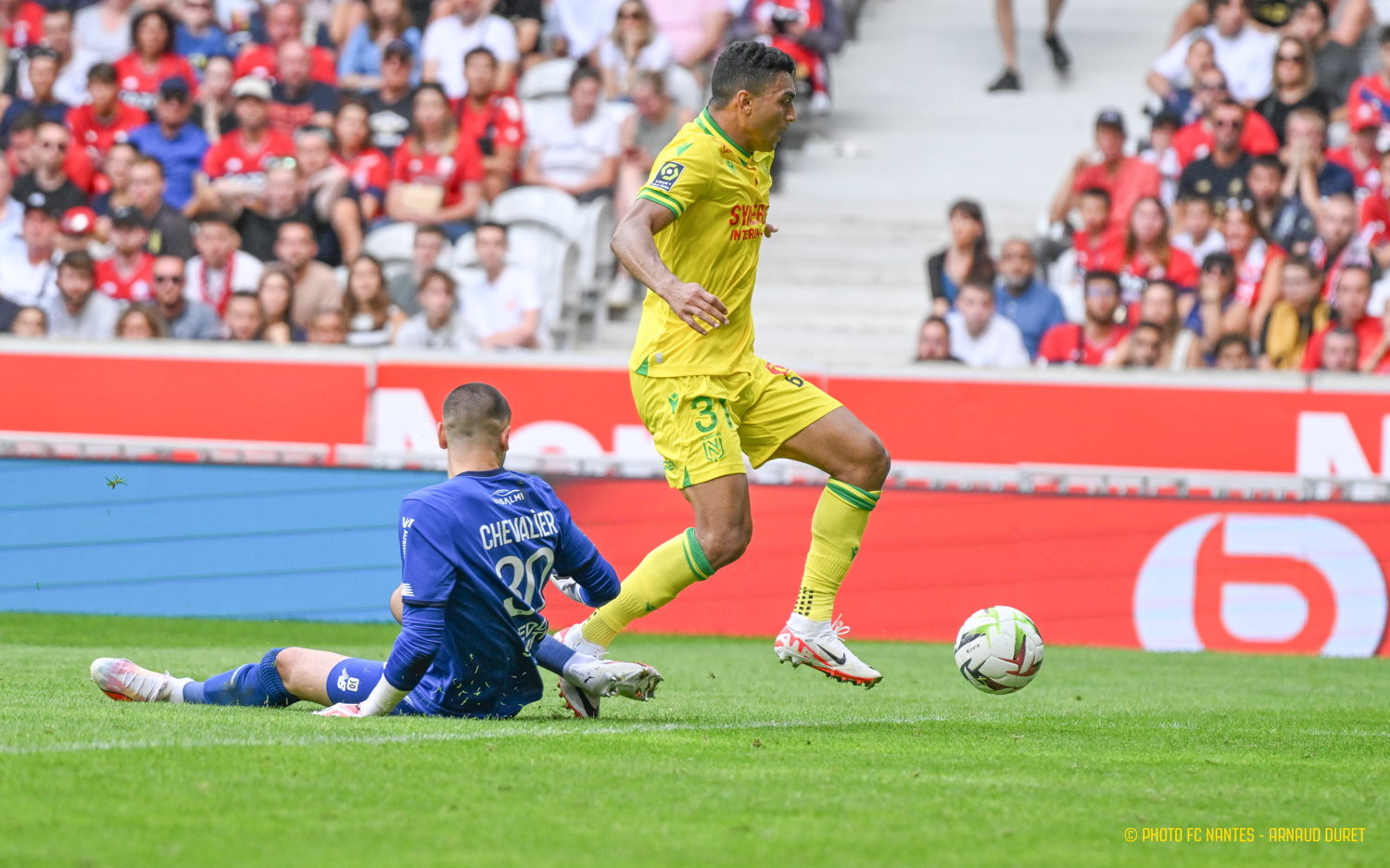 Le FC Nantes s'est incliné face au LOSC Lille lors de la deuxième journée de L1 Uber Eats (2-0). Appliqués défensivement, les joueurs de Pierre Aristouy ont contenu les Dogues jusqu'à l'heure de jeu et une réalisation à bout portant de Jonathan David (66e). Pas assez incisifs offensivement malgré plusieurs opportunités, les coéquipiers de Pedro Chirivella ont été définitivement distancés dans le temps additionnel sur une frappe imparable d'Adam Ounas (90e +4). fcnantes.com vous propose les images de la rencontre durant laquelle les Jaunes-et-Verts étaient soutenus par près de 400 supporters présents au stade Pierre-Mauroy.