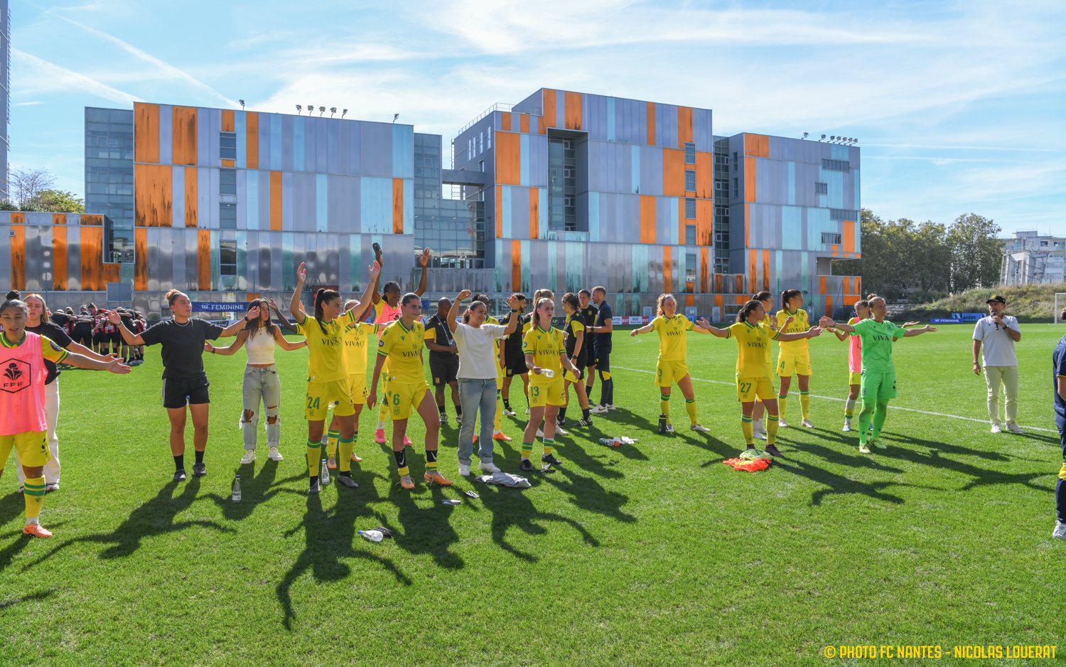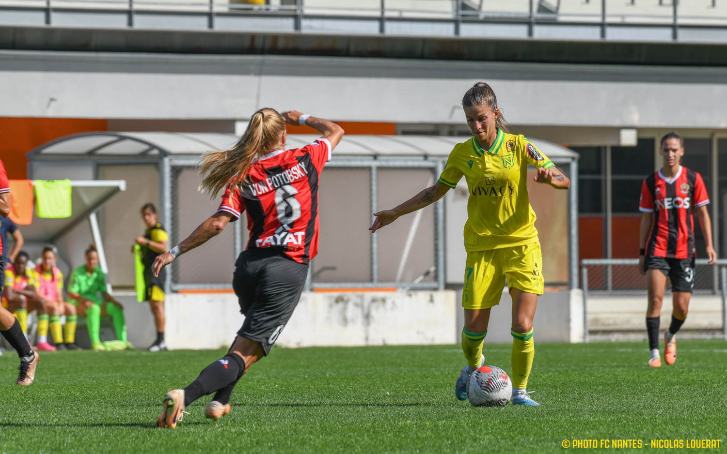 Les Féminines du FC Nantes ont concédé le partage des points dimanche après-midi à Marcel-Saupin. Opposées à l'OGC Nice dans le cadre de la 2ème journée de D2F, les joueuses de Nicolas Chabot n'ont pas réussi à trouver la faille d'une solide formation niçoise (0-0). Un résultat qui maintient les Jaunes-et-Vertes dans le haut du tableau (4e) à deux longueurs du leader lensois. fcnantes.com vous propose les images de la rencontre disputée à Marcel-Saupin.