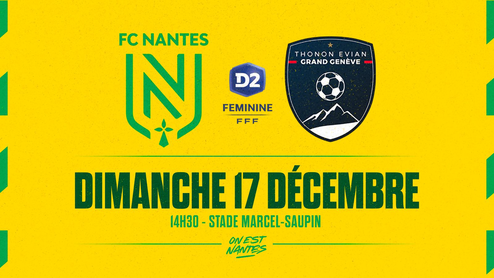 Dimanche à 14h30, le FC Nantes reçoit la formation du Thonon Évian GG FC au Stade Marcel-Saupin dans le cadre de la 9ème journée de D2F. Les Jaunes et Vertes comptent sur votre soutien !