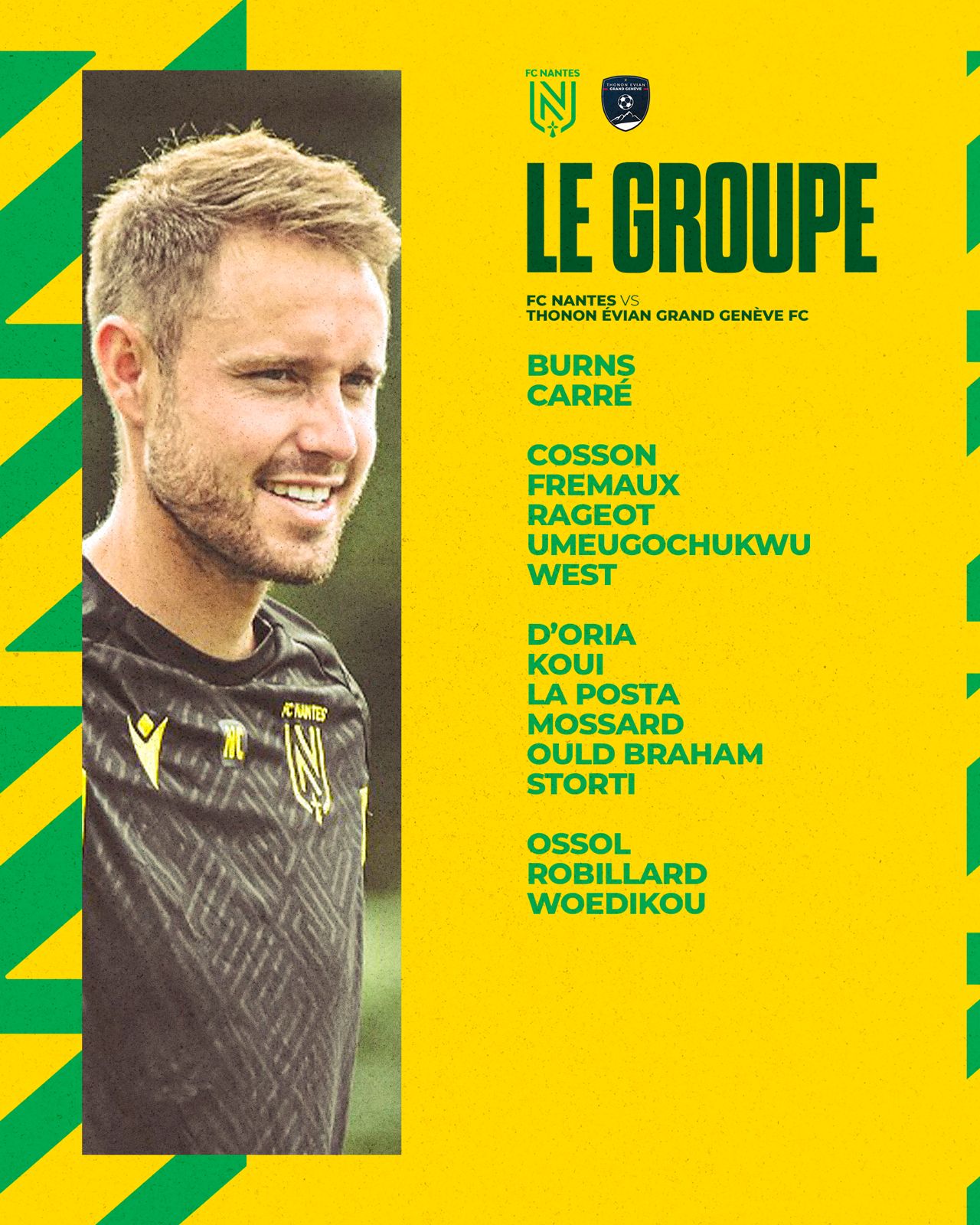 Le FC Nantes évoluera cet après-midi (14h30) au Stade Marcel-Saupin devant le Thonon Évian GG FC, pour le compte de la 9ème journée de championnat D2F, saison 2023-2024. Découvrez le groupe retenu par le technicien nantais, Nicolas Chabot.