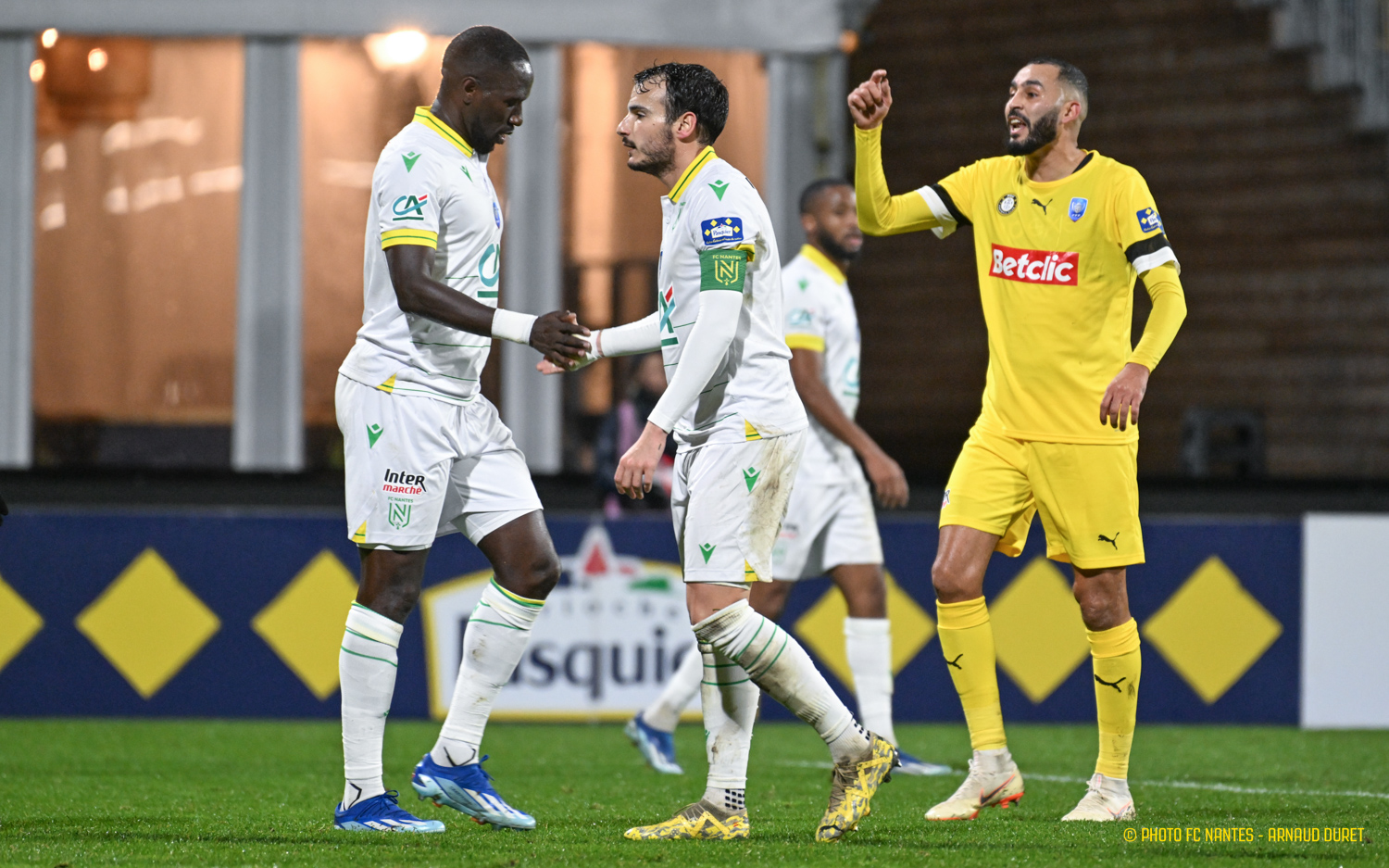 Le FC Nantes s'est imposé sur la pelouse du Pau FC dans le cadre des 32èmes de finale de la Coupe de France (1-4). Menés à la pause, les coéquipiers de Florent Mollet - auteur du but égalisateur (48e) -, ont réagi en seconde période pour finalement s'imposer. Un doublé de Tino Kadewere pour sa première en Jaune-et-Vert (80e et 83e) et une percée gagnante de Kader Bamba (88e) ont validé le ticket nantais pour le tour suivant. fcnantes.com vous propose les images de la rencontre jouée devant près de 4000 spectateurs au Nouste Camp.
