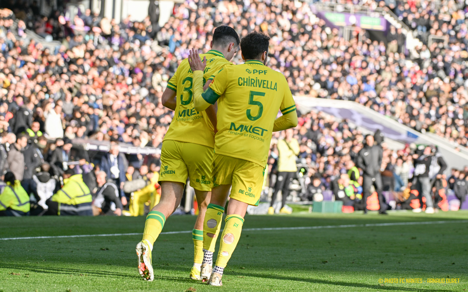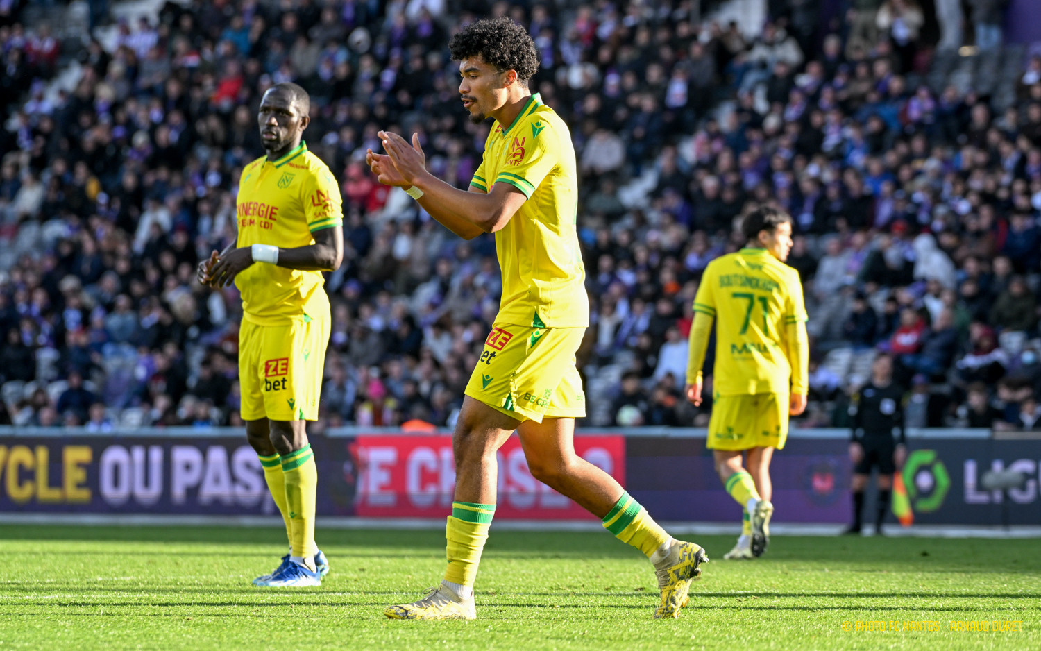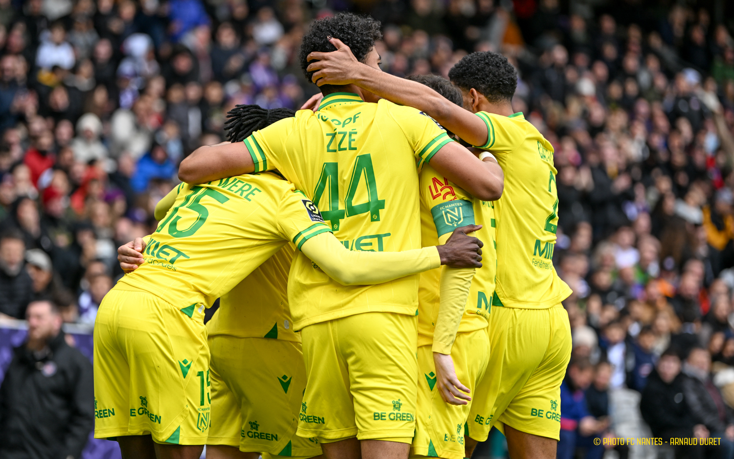 Les Jaunes-et-Verts ont réussi une belle performance sur la pelouse du Stadium en remportant une précieuse victoire (1-2). Mostafa Mohamed, sur un coup-franc imparable pour Guillaume Restes, a guidé le FC Nantes sur la voie du succès dès la 2ème minute de jeu. Tino Kadewere, à la conclusion d'un mouvement collectif, a profité d'une offrande de l'international égyptien pour accroître l'avantage nantais (51e). La réduction de l'écart par Thijs Dallinga (90e+6) en fin de match ne contrariait pas les plans de Nantais mordants et bien décidés à relever la tête. fcnantes.com vous propose les images de la rencontre marquée par les débuts de Nicolas Cozza avec le maillot nantais et la première en L1 Uber Eats d'Enzo Mongo.