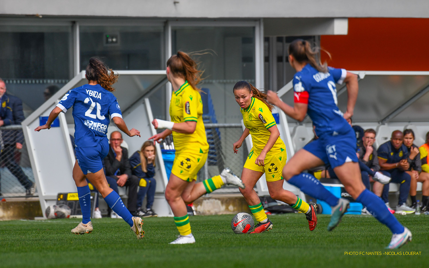 Dans un stade Marcel Saupin plein à craquer, dimanche après-midi, les joueuses de Nicolas Chabot ont marqué un grand coup dans la course à la montée en D1, en s'imposant 3-2 face à l'Olympique de Marseille. Mal embarquées car menées 0-2 après un quart d'heure de jeu, les Jaune et Verte ont renversé leur adversaire, grâce à des réalisations de Rodrigues (42'), Cosson (72') et Oduro (90'). fcnantes.com vous propose de revenir en images sur ce bel après-midi à Saupin.