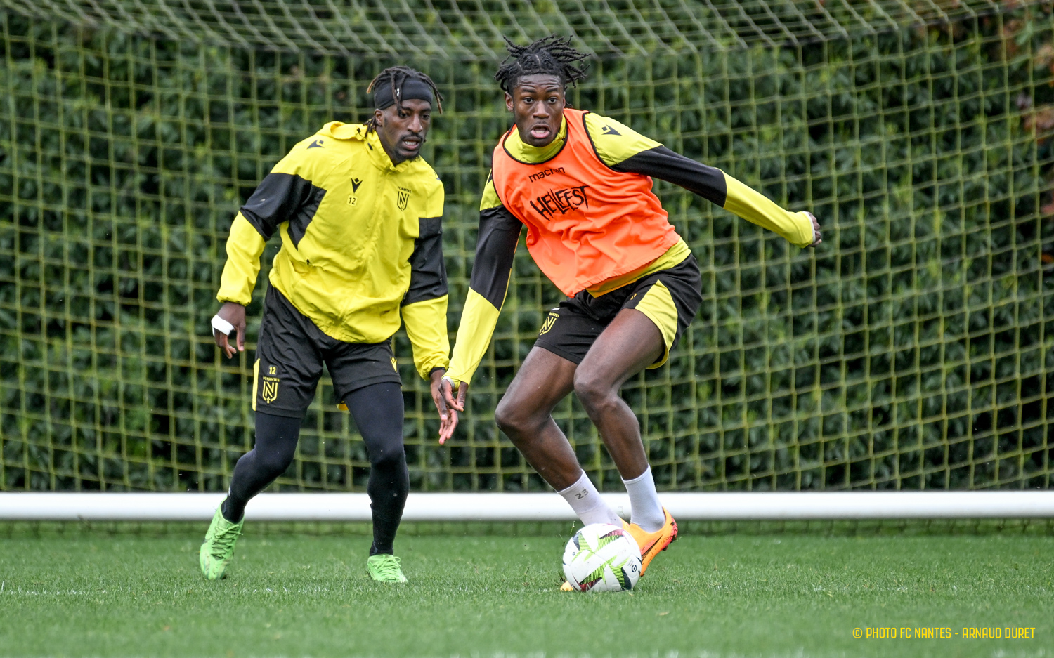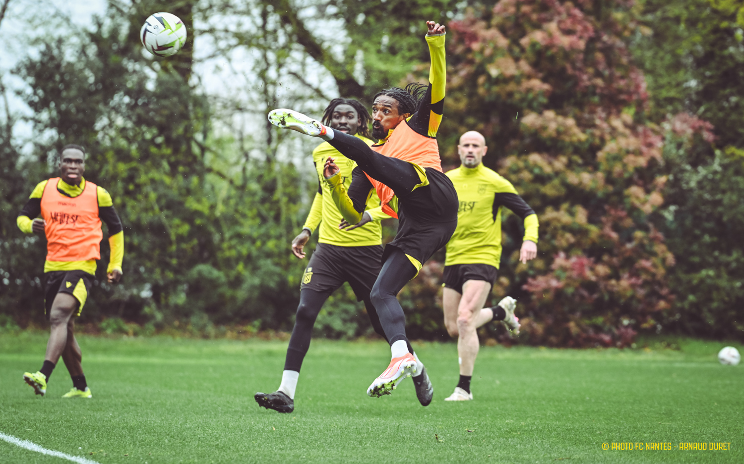 Les joueurs d'Antoine Kombouaré ont rechaussé les crampons jeudi matin pour une nouvelle session de travail à la Jonelière. Sous la houlette du staff nantais, les coéquipiers de Nathan Zézé et de Mathis Abline (photo en une) ont multiplié les exercices en vue de la réception de l'Olympique Lyonnais, dimanche soir à la Beaujoire (20h45). fcnantes.com vous propose les images de la préparation nantaise avant l'affiche de la 28ème journée de L1 Uber Eats (match disputé à huis clos).