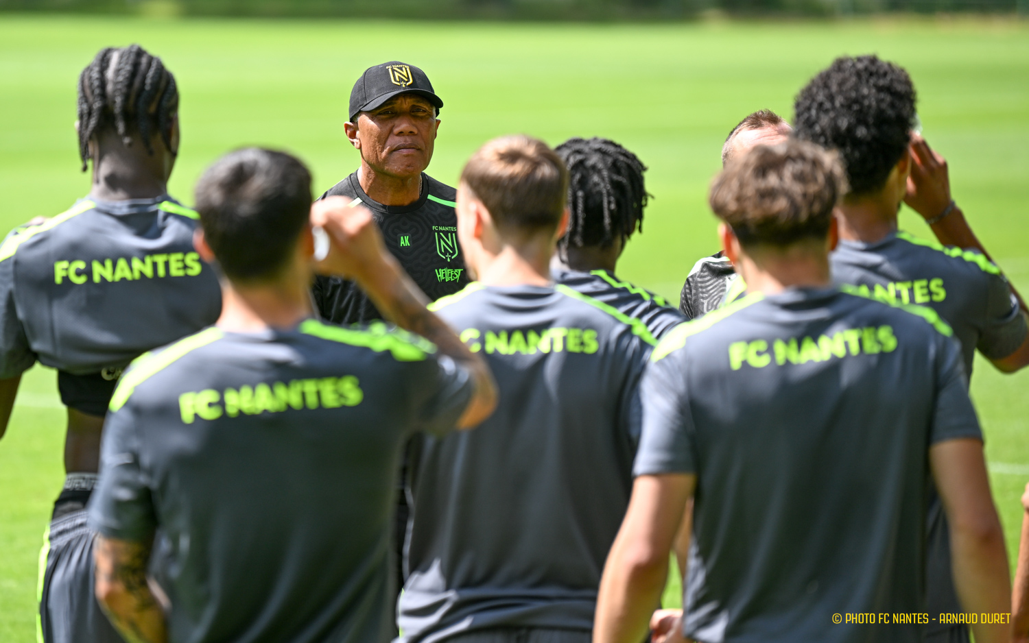 C'est reparti ! Les joueurs d'Antoine Kombouaré ont rechaussé les crampons au Centre Sportif de la Jonelière. Convoqués lundi après-midi après plusieurs semaines de repos, les Jaunes-et-Verts ont suivi une première session mêlée de travail athlétique et de petits jeux avec ballon. Sous de larges éclaircies et dans une ambiance studieuse, les Nantais ont lancé leur préparation pour la saison 2024-2025. fcnantes.com vous propose les images de cette première séance sur les rives de l'Erdre.