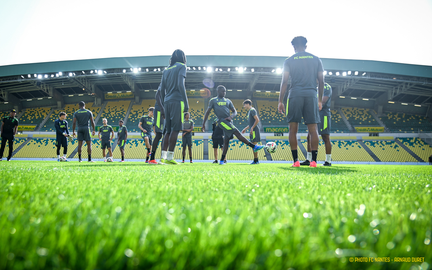 Dans les starting-blocks ! A quatre jours des retrouvailles avec la Beaujoire, les Jaunes-et-Verts ont retrouvé leur antre lors d'une session de travail en vue de la réception de l'AJ Auxerre, dimanche 25 août (17h). fcnantes.com vous propose quelques images de cette prise de marques au cœur de l'enceinte qui se prépare à retrouver ses supporters.