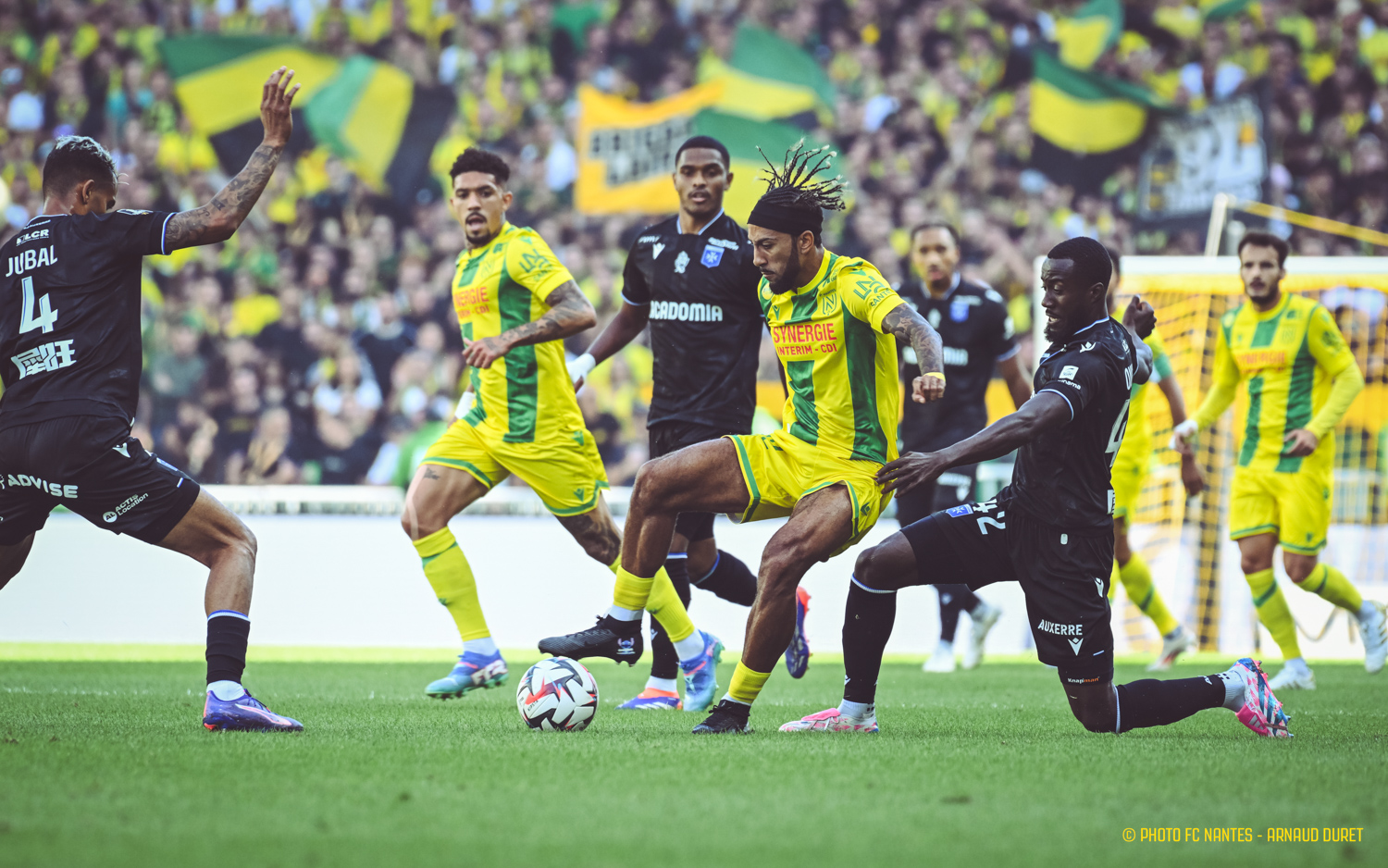 Des retrouvailles détonantes ! A l'image de la joie acrobatique de Moses Simon, les Jaunes-et-Verts ont renoué le sourire et le chemin de la victoire à la Beaujoire face à l'AJ Auxerre (2-0). Accompagnés et soutenus par plus de 31000 supporters pour cette première réussie dans l'antre nantais, les joueurs d'Antoine Kombouaré ont pris les devants grâce à l'international nigérian (14e) avant de sceller l'issue du match par une première réalisation, celle du jeune attaquant "Made in FC Nantes" Herba Guirassy (90e+6). Flashback en images sur la victoire.