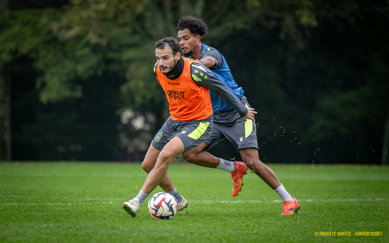A l'image de Mostafa Mohamed et de Jean-Kevin Duverne (photo en une), les Nantais n'ont pas ménagé leurs efforts mercredi matin lors d'une session dynamique et soutenue. A l'approche de la venue de l'Olympique de Marseille, les joueurs d'Antoine Kombouaré se préparent activement au Centre Sportif de la Jonelière avec la ferme intention de relever la tête dimanche soir à la Beaujoire (20h45). fcnantes.com vous propose des images de la préparation nantaise.