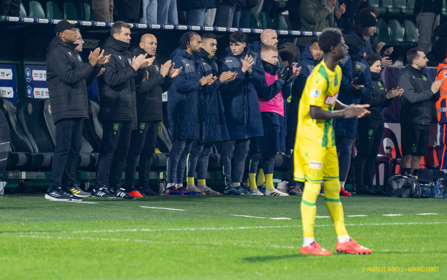 Soutenu par près de 250 supporters présents en Seine-Saint-Denis pour le dernier rendez-vous de l'année 2024, le FC Nantes s'est imposé face à la JA Drancy dans le cadre des 32èmes de finale de la Coupe de France (0-4). En lice sur la pelouse du Stade Bauer à Saint-Ouen, les Jaunes-et-Verts ont pris l'ascendant en première période grâce à un doublé de Matthis Abline (20e et 33e). En seconde période, Nathan Zézé, auteur de son premier but d'une tête imparable (63e), et Mostafa Mohamed, en embuscade sur une remise de Kelvin Amian (83e), ont participé à la fête. Le FC Nantes valide ainsi son billet pour les 16èmes de finale de la Coupe de France et connaîtra son adversaire dès ce dimanche 22 décembre à 20 heures. Le tirage sera retransmis en direct sur la chaîne BeIN Sport 1.