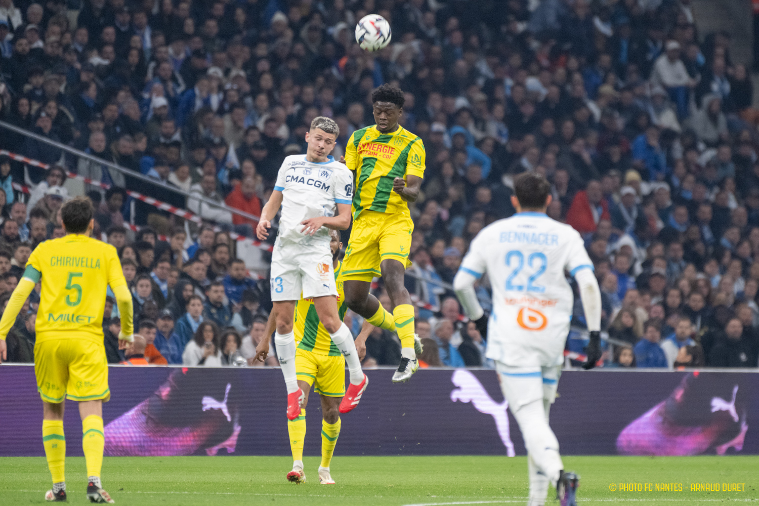 Le FC Nantes s'est incliné face à l'Olympique de Marseille en baisser de rideau de la 24ème journée de Ligue 1 McDonald's (2-0). Les Jaunes et Verts ont longtemps contenu les assauts olympiens avant de céder en fin de rencontre sur des réalisations d'Amine Gouiri (73e) et Mason Greenwood (77e). fcnantes.com vous propose les images de la rencontre marquée par les titularisations de Francis Coquelin et de Louis Leroux.