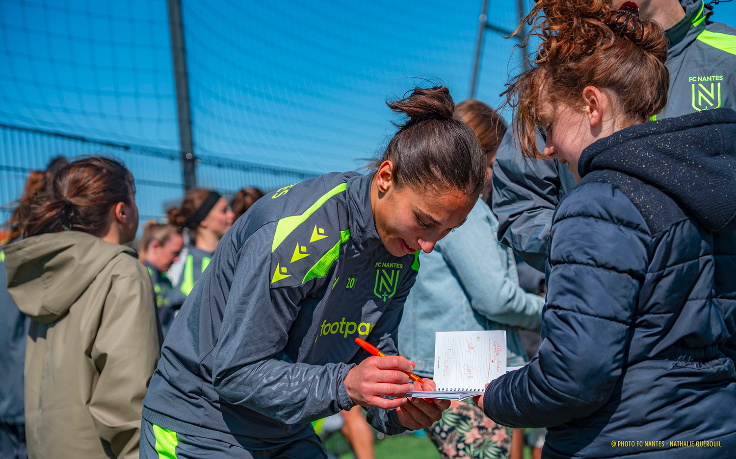 Les Jaunes et Vertes étaient en Vendée mercredi 2 avril pour une séance d'entraînement délocalisée, ouverte au public. Profitant de cette semaine de trêve internationale, les Nantaises se déplacent dans les clubs des environs pour renforcer leurs liens avec les clubs voisins. Le FC Nantes remercie le club Vendée Poiré Football pour son accueil et la mise à disposition de ses infrastructures.