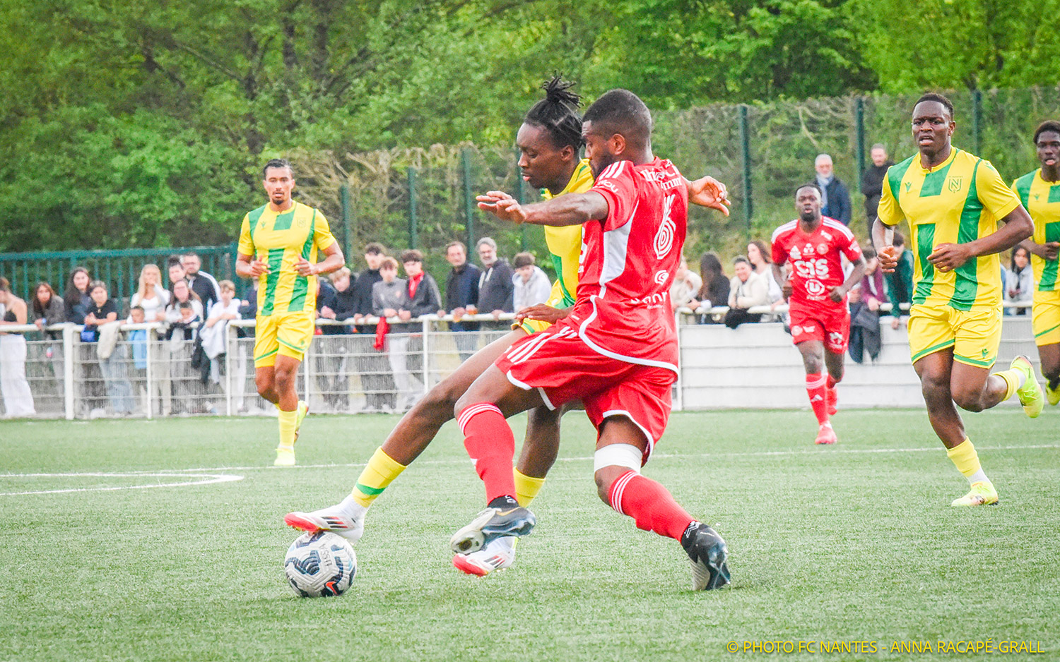 Samedi, le FC Nantes se déplaçait chez son voisin de l'USSA Vertou dans le cadre de la 22e journée de National 3. Alors qu'ils ont mené par deux fois grâce à des réalisations de Bahereba Guirassy (65') et Adel Mahamoud (72' p.), les joueurs de Stéphane Ziani repartiront du stade des Echalonnières avec un point, rejoints in extremis sur un pénalty au bout du temps additionnel. Les Canaris restent deuxièmes au classement, à une longueur de Chauray, à quatre longueurs du terme de la saison. Retour en images sur le derby USSA Vertou - FC Nantes.