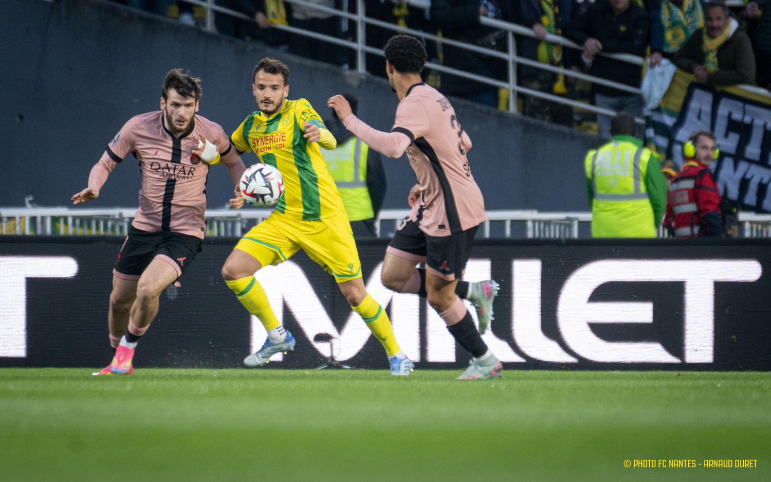 Poussés par une Beaujoire des grands soirs avec plus de 34000 supporters, les Jaunes et Verts ont réussi une belle performance face au Paris SG (1-1). Les coéquipiers de Pedro Chirivella, menés dès la 33ème minute de jeu sur une réalisation de l'international portugais Vitinha, ont été récompensés de leur ténacité en fin de match sur une frappe limpide de Douglas Augusto (83e). Retour en images sur une soirée festive et marquée par l'hommage du Peuple Nantais à une figure historique du Club, Monsieur Guelso Zaetta.