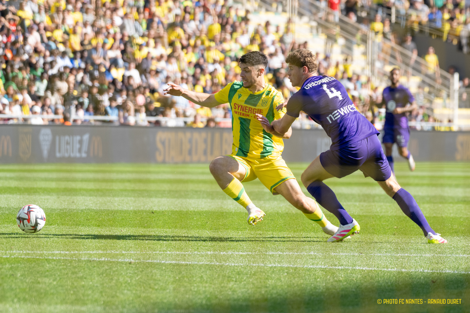 Le FC Nantes et le Toulouse FC n'ont pas réussi à se départager à la Beaujoire dans le cadre de la 31ème journée de L1 McDonald's (0-0). Les Jaunes-et-Verts - en supériorité numérique suite à l'exclusion de Noah Edjouma lors de sa première comme titulaire en Ligue 1 (38e) -, n'ont pas trouvé la faille face à des Toulousains bien regroupés devant la cage de Guillaume Restes. Retour en images sur la rencontre disputée devant plus de 31000 supporters.