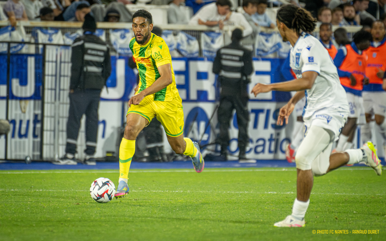 Les Jaunes et Verts ont arraché face à l'AJ Auxerre un point précieux dans la course au maintien (1-1). Menés juste avant la pause suite à une réalisation de Gaëtan Perrin (45e), les joueurs d'Antoine Kombouaré ont réagi à l'heure de jeu. Soutenus par plus de 800 supporters sur les rives de L'Yonne, les coéquipiers de Pedro Chirivella trouvaient le chemin des filets suite à un débordement de Sorba Thomas conclu par Louis Leroux (62e). Retour en images sur la rencontre jouée à guichets fermés à l'Abbé-Deschamps.