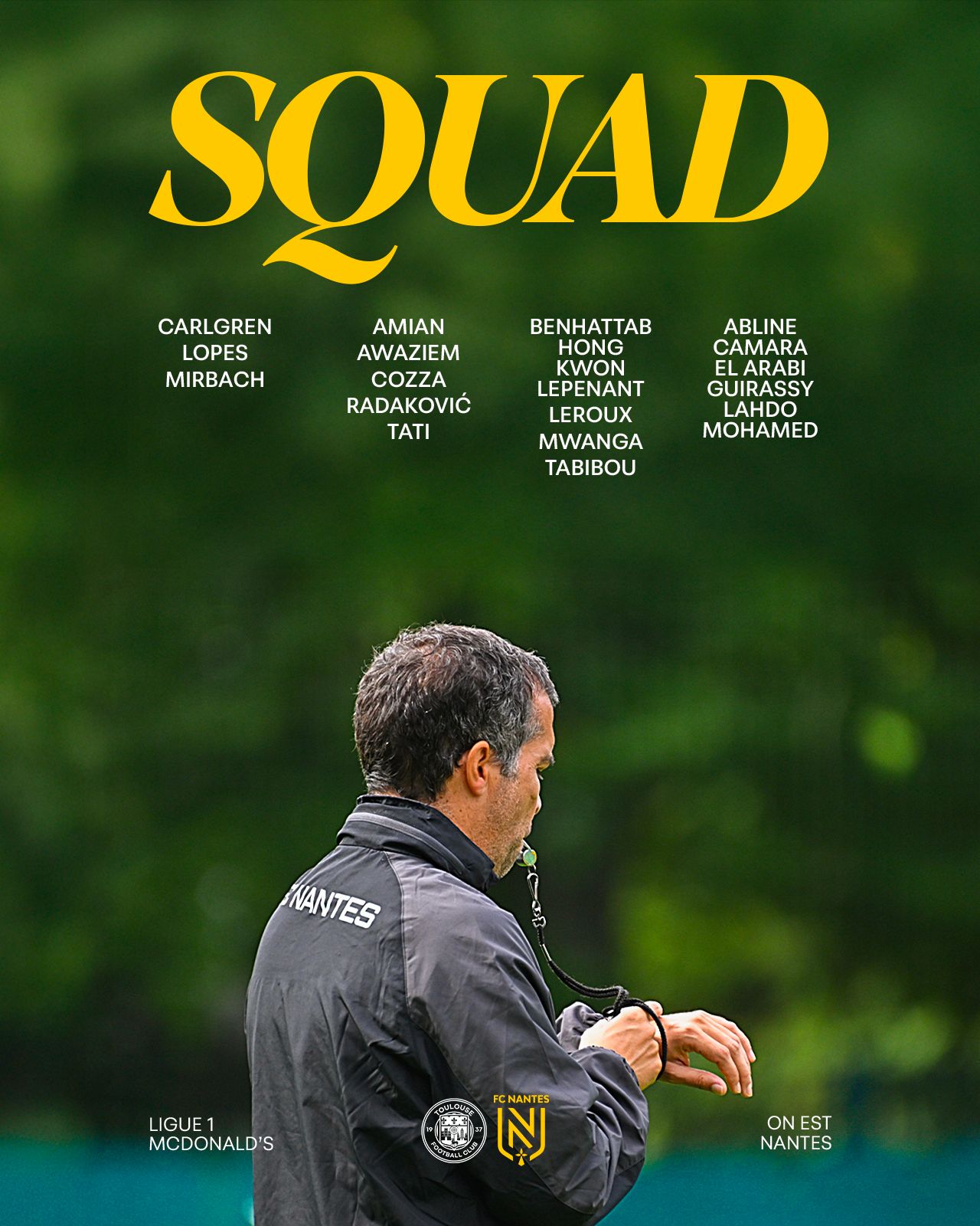Pour son sixième match de la saison en Ligue 1 McDonald's, le FC Nantes se déplacera à Toulouse, ce samedi à 19h au Stadium. L'entraîneur Luis Castro a retenu un groupe de 21 joueurs pour cette rencontre.