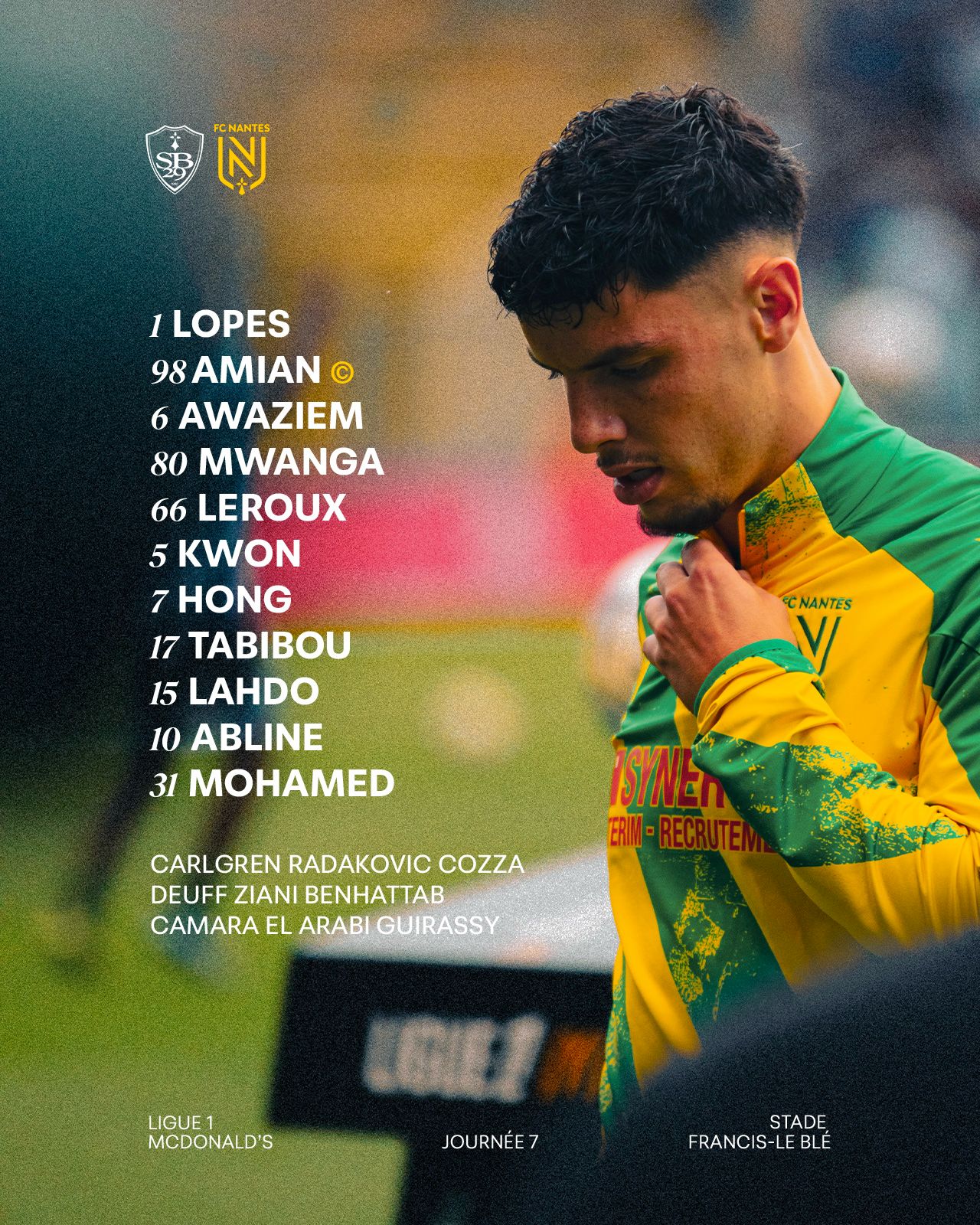 Retrouvez la composition retenue par Luis Castro pour débuter le match face au Stade Brestois, en 7ème journée de Ligue 1 McDonald's. Coup d'envoi de la rencontre à 19h00.