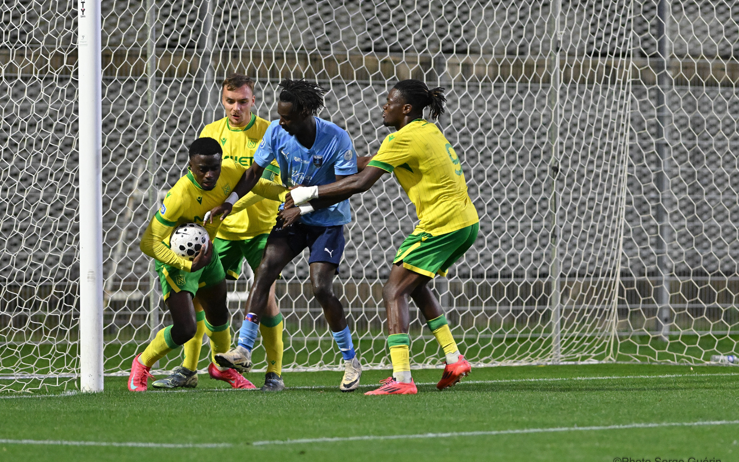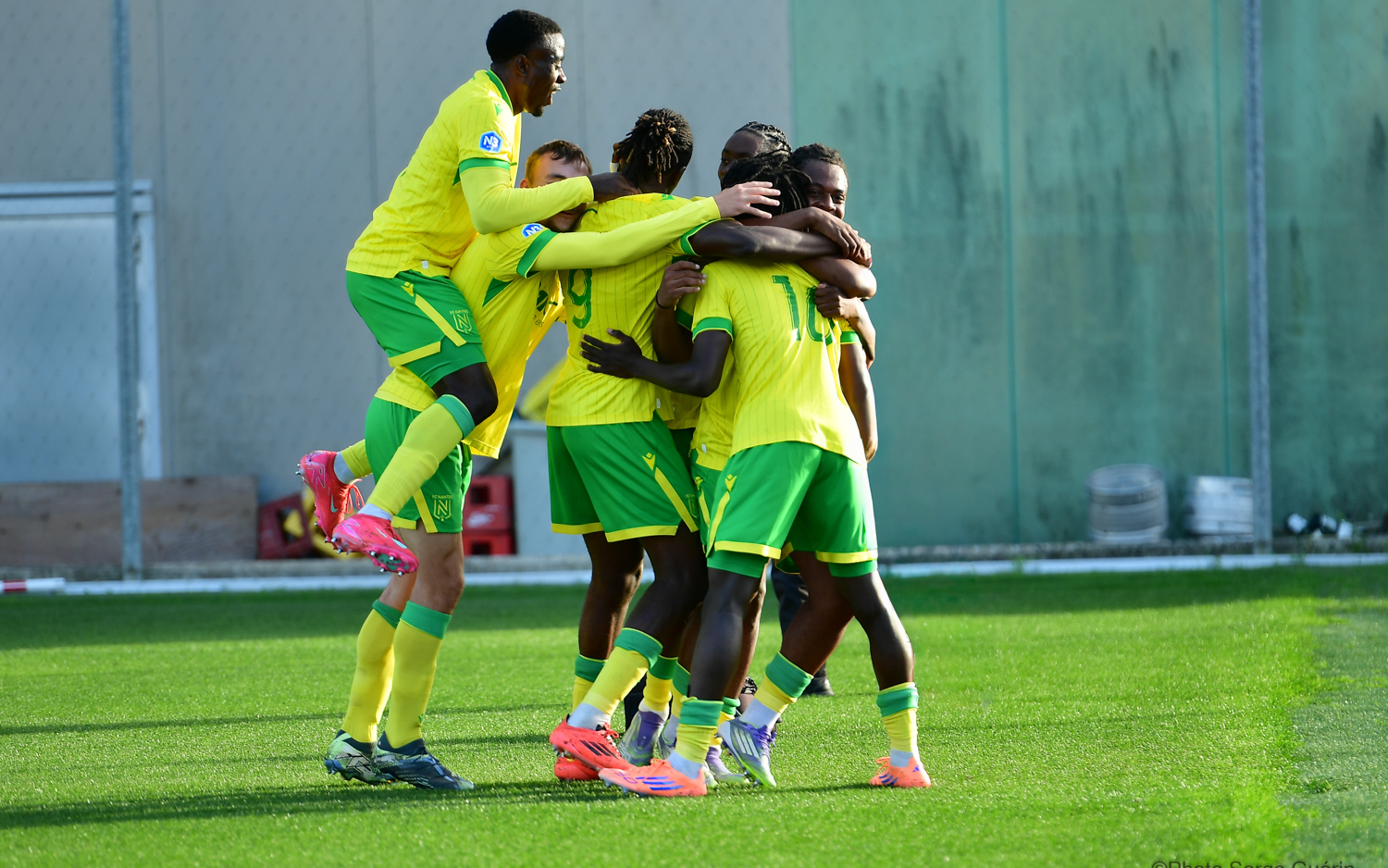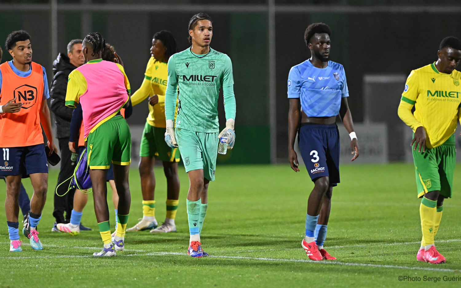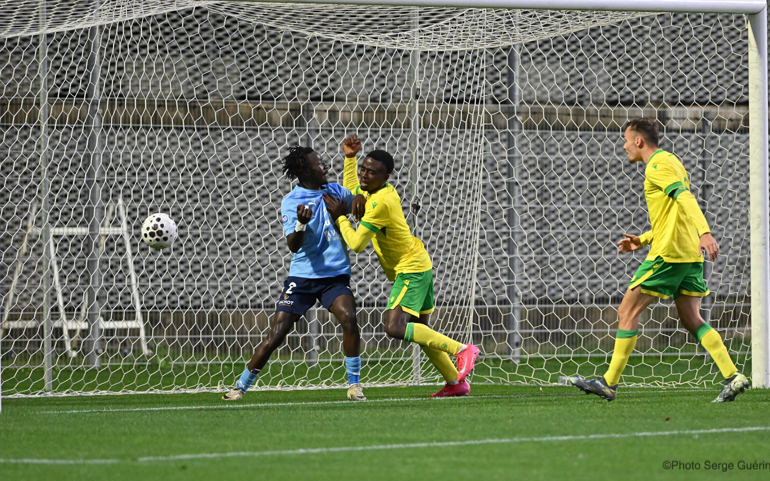 La formation de N3 du FC Nantes s'est accrochée à Marcel-Saupin pour obtenir le partage des points face aux Sables VF (2-2). Les joueurs de Stéphane Ziani avait pourtant pris les devants grâce à Sanah Camara, idéalement servi par Jordi Kuange (1-0, 15e). Les Vendéens ont réagi dans la foulée avant de prendre l'avantage à l'heure de jeu sur un doublé de l'attaquant sénégalais, Mansour Samb (20e et 64e). Les coéquipiers d'Enzo Mongo (photo en UNE) se sont accrochés jusque dans les derniers instants du match pour arracher in extremis le point du match nul sur une réalisation d'Emmanuel Kiah (90e : 2-2). Un match nul qui permet aux Jaunes et Verts de se maintenir dans la première partie du tableau à égalité de points avec l'Union Foot de Touraine (5ème).